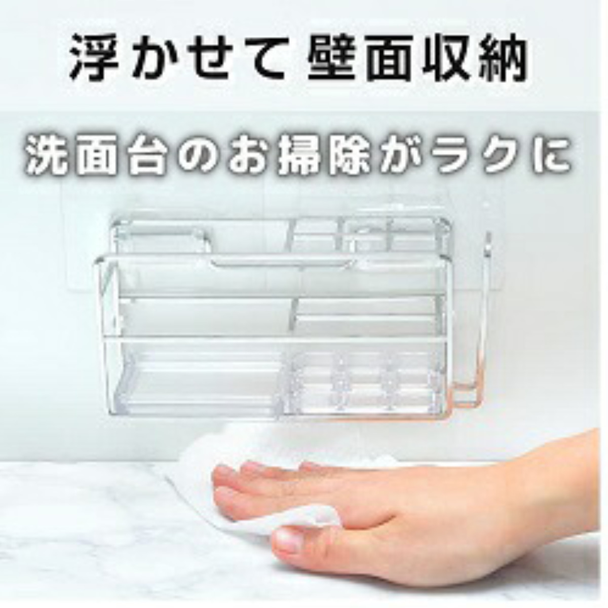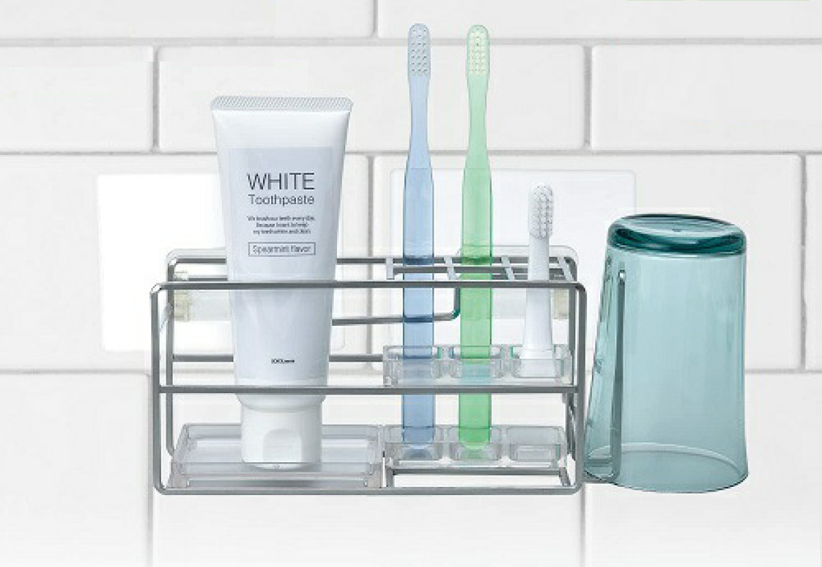 ●浮かせる壁面収納で洗面所をすっきり整理できる、スタイリッシュな角ワイヤーの歯ブラシスタンドです。