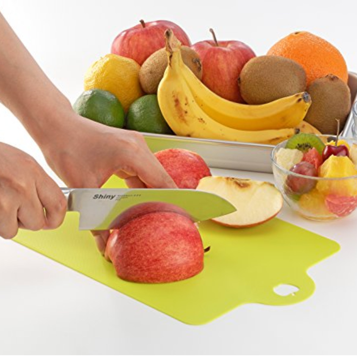 ●柔らかい樹脂素材で簡単に曲げられるので、切った食材を鍋に移しやすいです。