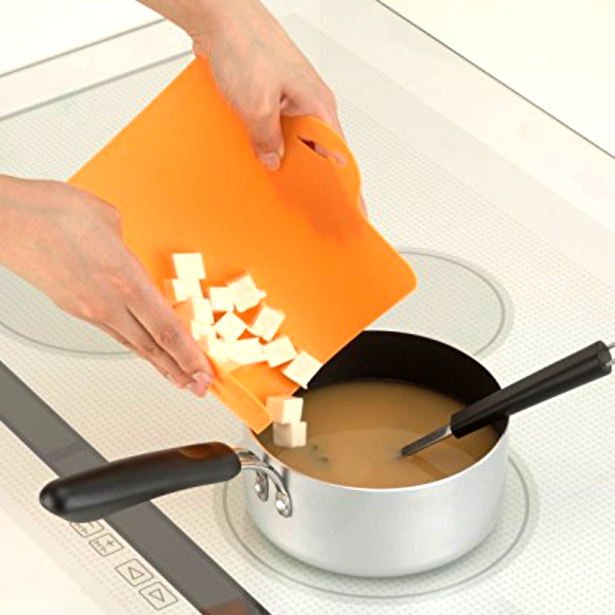 薄くて柔らかいシートタイプなので、軽量で扱いやすいです。くにゃっと曲げられるので、食材をこぼさずスムーズに移せます。