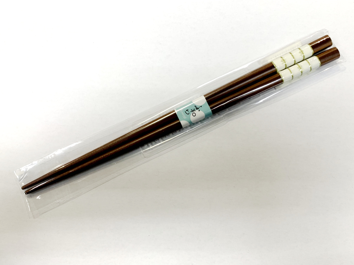 ●落ち着いたブラウンの木地に、白とゴールドの上品な装飾をあしらった天然木のお箸です。
