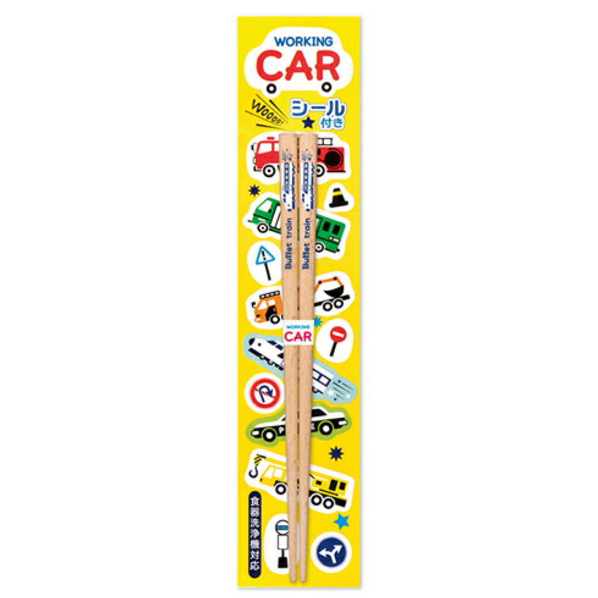 箸 子供箸 WORKING CAR 16.5cm ( 日本製 食洗機対応 シール付き クレーン車 消防車 ショベルカー 新幹線 バス パトカー お箸 子供 子ども キッズ 乗り物 のりもの 子供用 天然木 カトラリー すべり止め加工 つかみやすい ) 【新幹線】