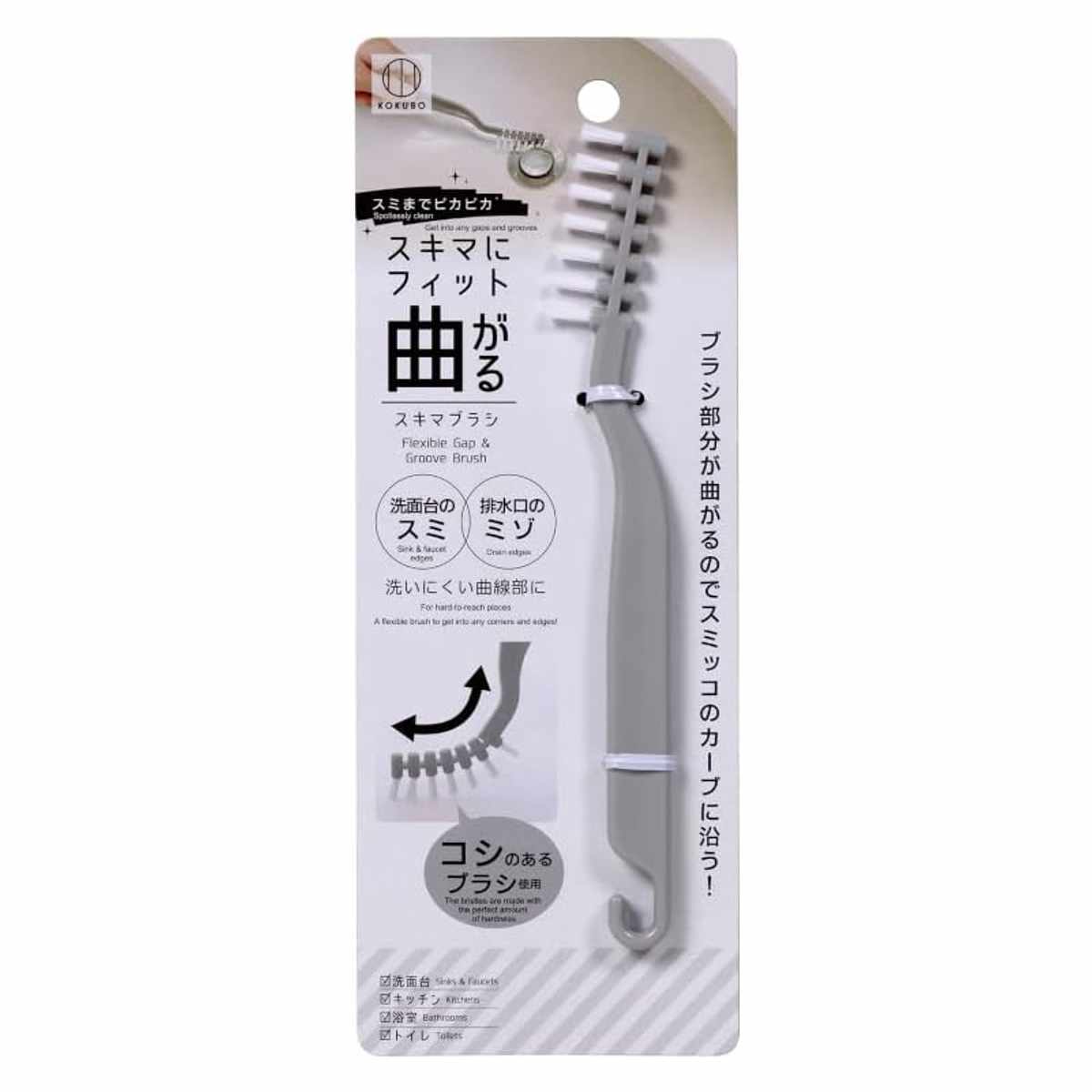 スキマにフィットするスキマブラシです。ブラシ部分が曲がるので、蛇口や排水口周りなどの洗いにくい曲線部にも沿ってしっかり洗えます。コシのあるブラシで、洗面台やキッチン、浴室、トイレの隅々まできれいに掃除できます。