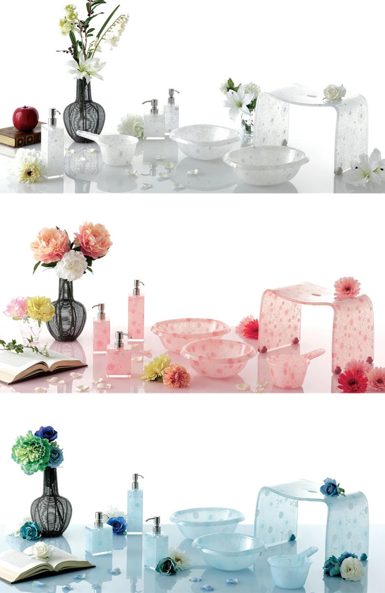 ●透明度の高いアクリル素材と、金色や銀色のラメが光に反射して輝き、華やかなバスルームを演出してくれます。