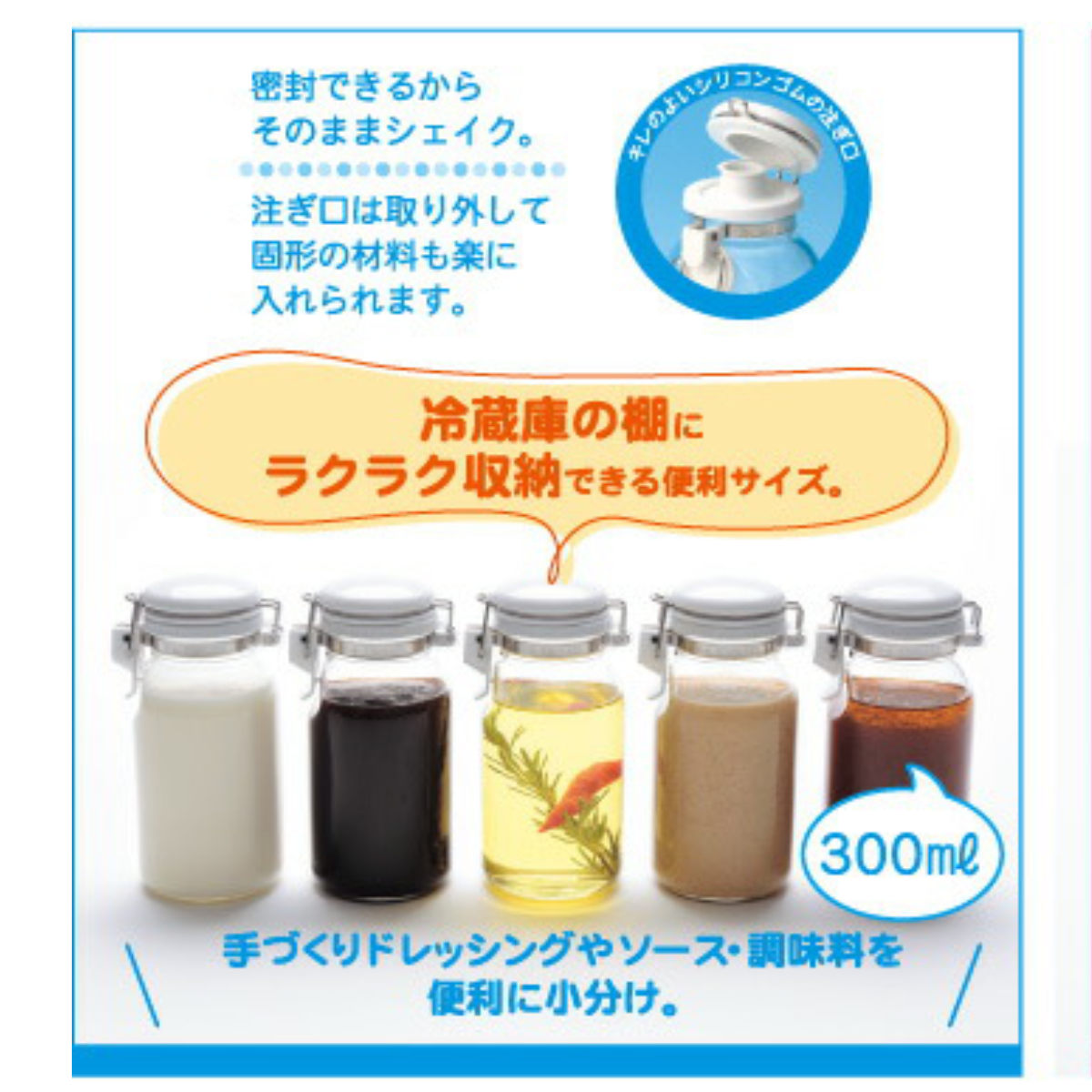 保存容器 300ml これは便利調味料びん300 セラーメイト 日本製 ( ドレッシングボトル 調味料入れ ガラス製 キャニスター 密封 調味料びん びん 保存びん 調味料 瓶 容器 調味料容器 お手入れ簡単 液だれしにくい )