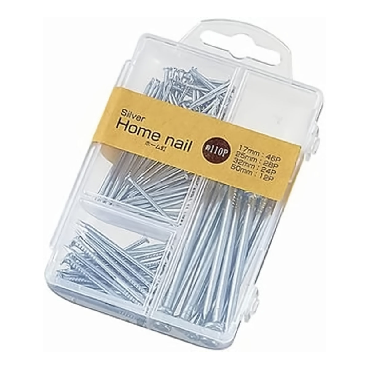ホーム釘セット 110P 17mm 25mm 32mm 50mm ( 釘 くぎ クギ ケース入り ケースセット 110本 4種入り DIY 工具 日曜大工 大工 工作 シルバー 丸釘 丸釘セット 釘セット くぎセット )