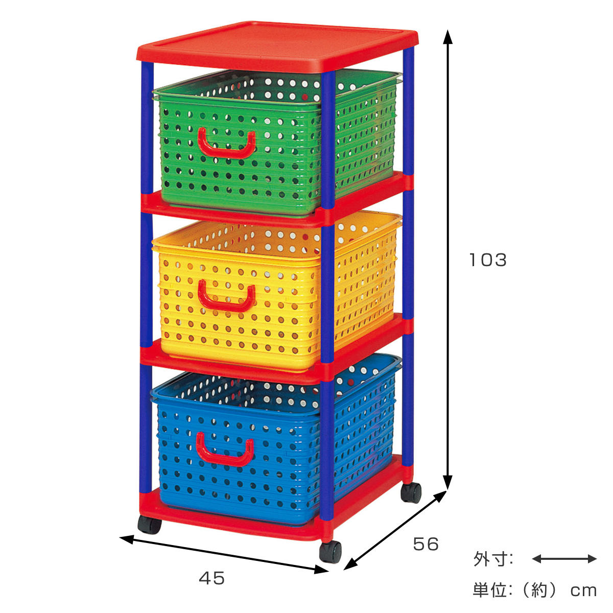おもちゃ箱 幅45cm 3段 バスケットラック キャスター付き バスケット ( かご カゴ オモチャ入れ 収納ボックス 簡単組立 ラック 衣類 収納 大容量 プラスチック製 子供 子ども 引き出し ランドセルラック )