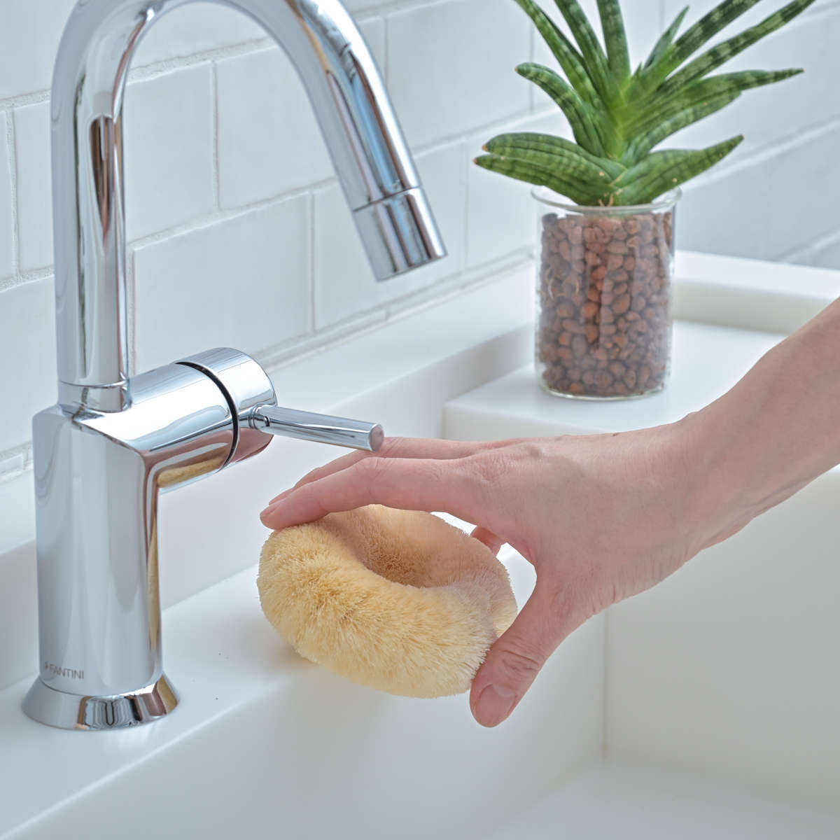 現代のキッチンにもなじむ丸いデザインのたわし