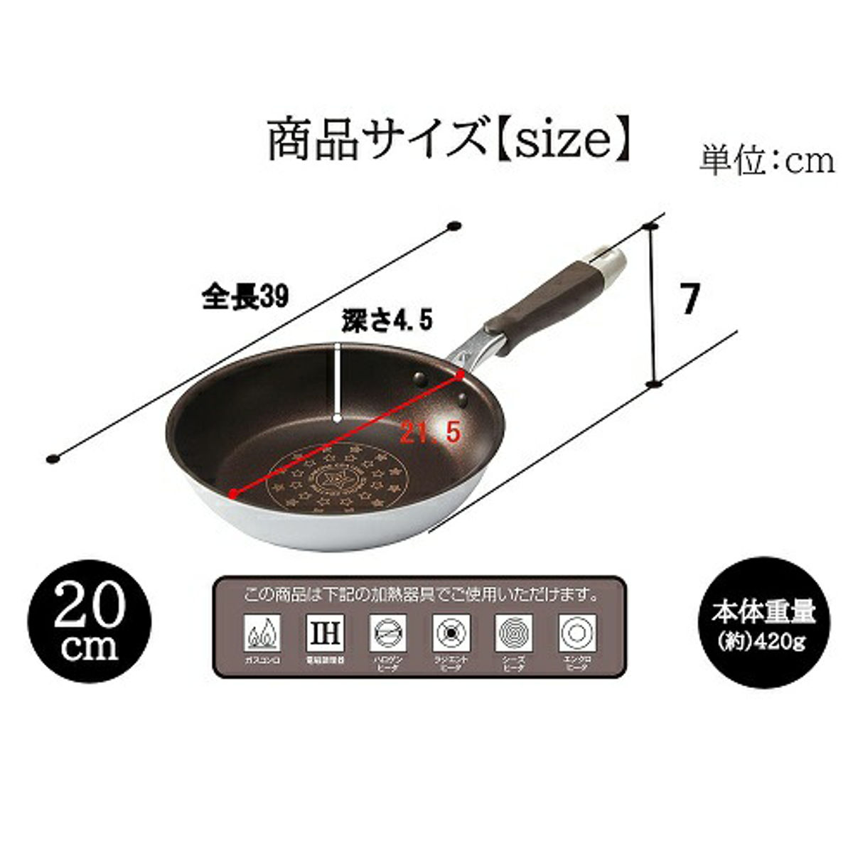 1~2人用の調理にぴったりなスタンダードサイズです。朝食づくりやお弁当のおかず作りなど、ちょっとした料理に重宝します。本体は熱伝導に優れたアルミニウム合金で、食材にムラなく火が通ります。ガス火・IHのどちらにも対応しており、キッチン環境を選ばずお使いいただけます。