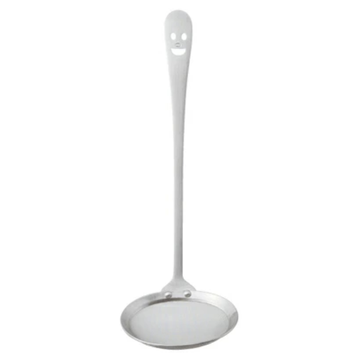 笑顔のモチーフがアクセントになった、ステンレス製のあく取りです。シンプルな中にも遊び心があり、毎日のお料理を楽しくしてくれます。継ぎ目のないフラットなデザインでお手入れもしやすく、また、素材には耐久性に優れた21-0ステンレスを使用しており、長くご愛用いただけます。