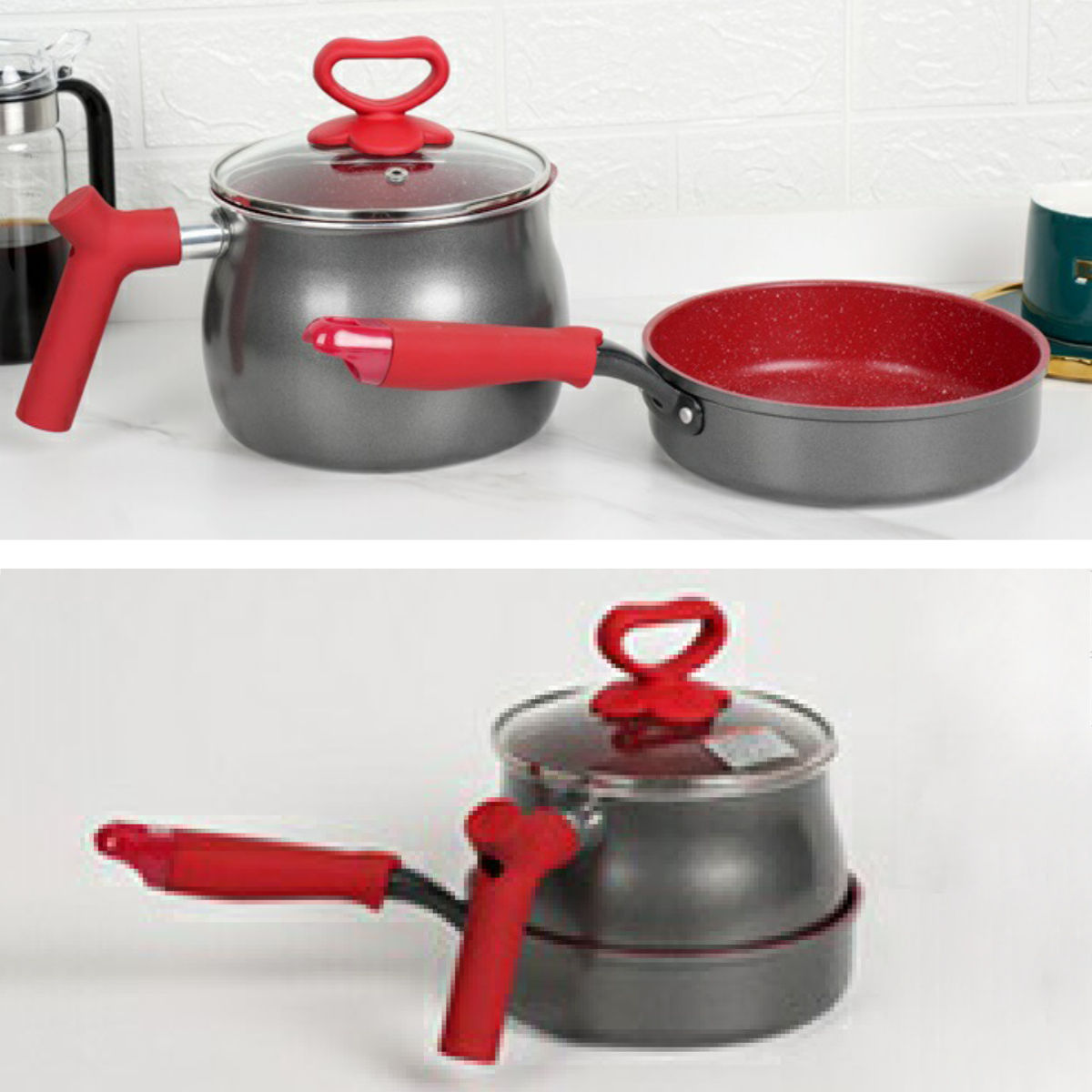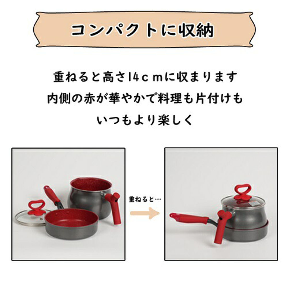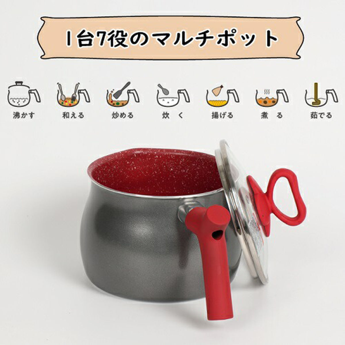 マルチポット フライパン 18cmセット IH対応 ( ガス火対応 鍋 片手鍋 ふっ素加工 軽い 18センチ アルミ鍋 ミニフライパン フッ素加工 フッ素コーティング アルミ製 軽量 おしゃれ )