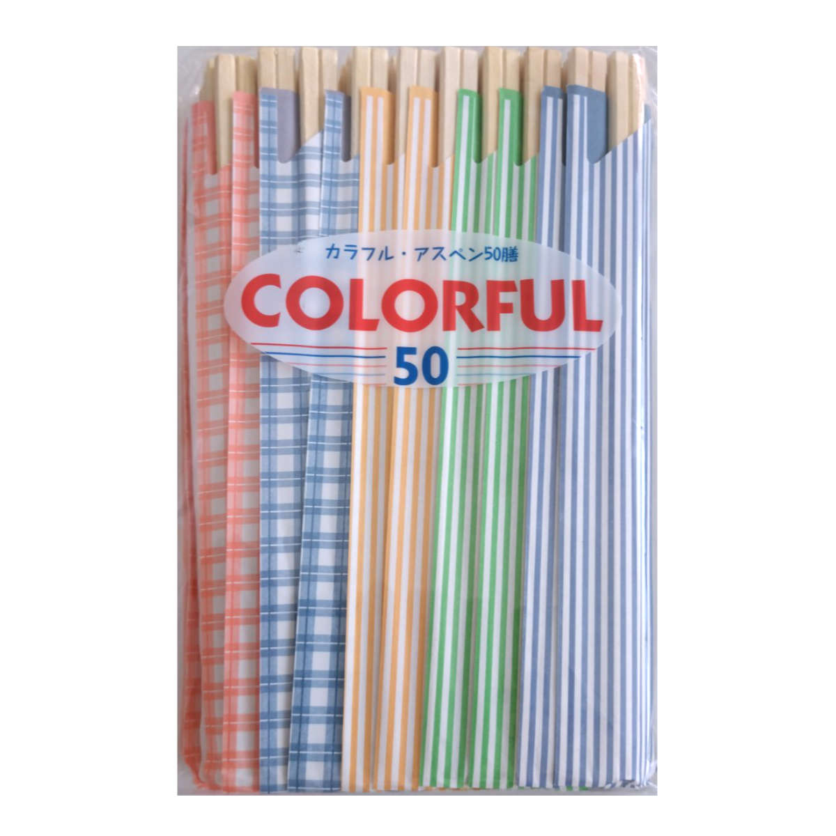 割り箸 50膳 カラフル アスペン割り箸 ( 20.3cm 割りばし 使い捨て お箸 箸 はし ハシ わりばし 割箸 エコ アスペン材 箸袋入り 箸袋付 元禄箸 )