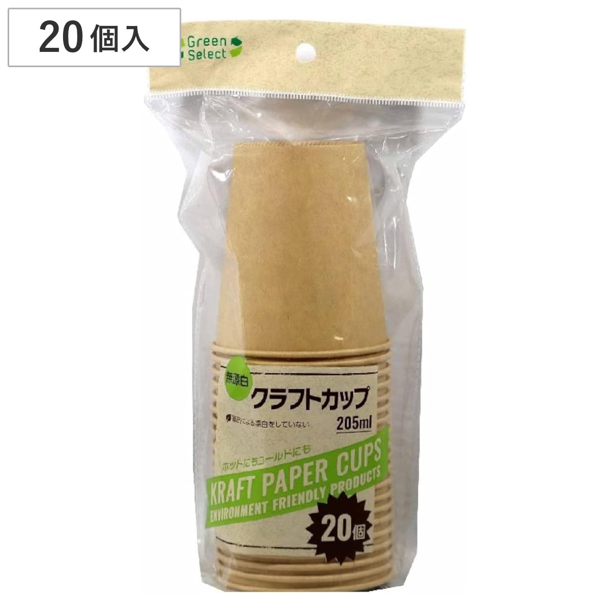 紙コップ 205ml 20個入 Green Select クラフトカップ ( 使い捨て 紙 コップ カップ ホット コールド クラフト紙 紙容器 紙製 ペーパーコップ ペーパーカップ BBQ アウトドア パーティー キャンプ )