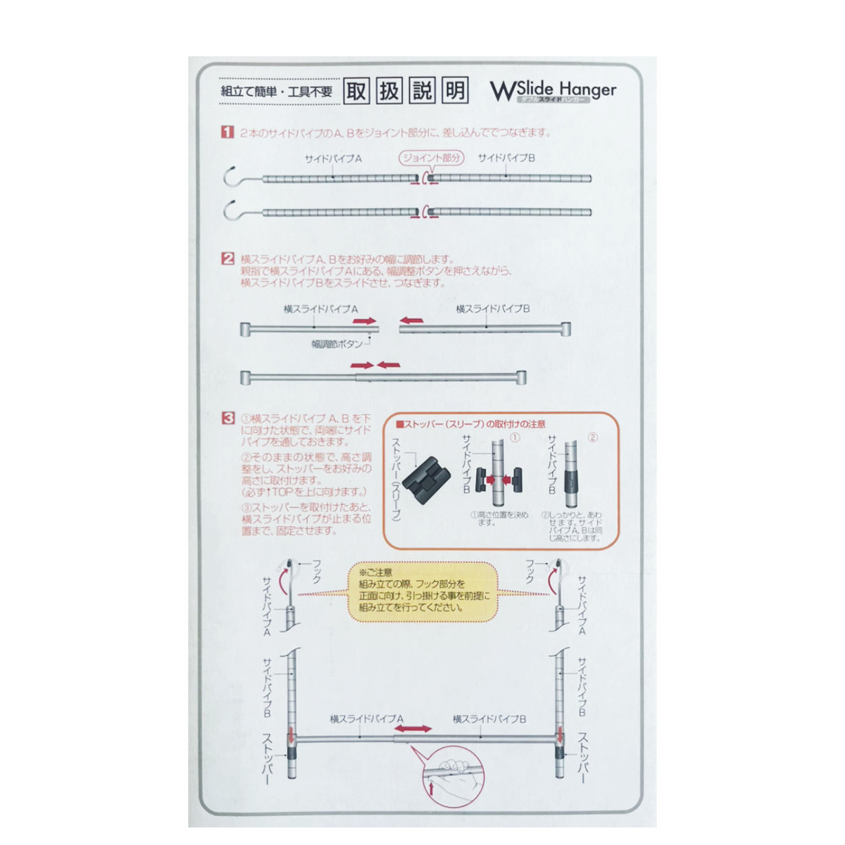 | 材質 | パイプ:スチール(クロームメッキ) ストッパー:ABS フックキャップ:PVC パイプキャップ:PP |