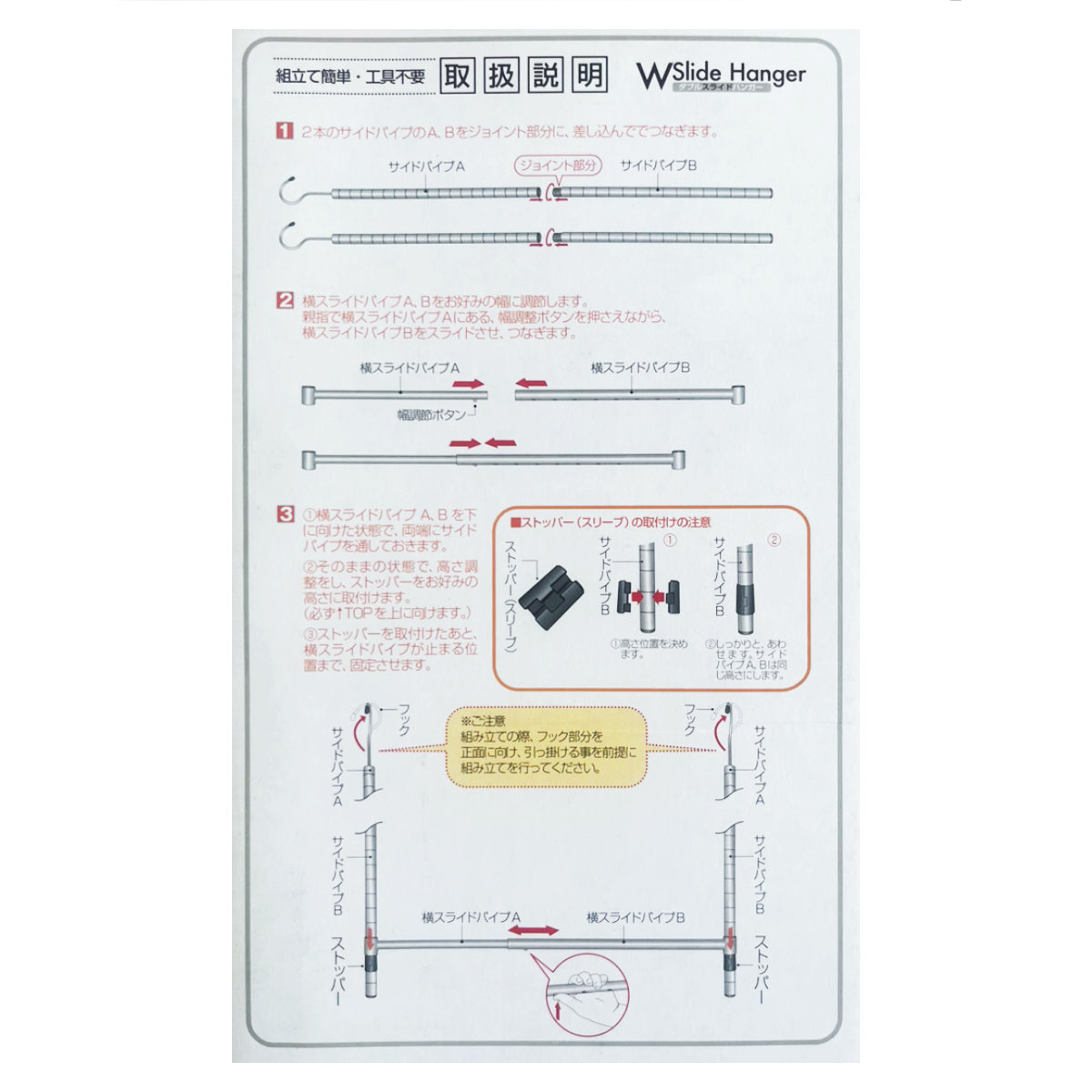 | 注意事項 | ※ハンガーを掛けるためのステンレス棒は付属しておりません。お手持ちのハンガー掛けや物干しざお等に掛けてご使用ください |