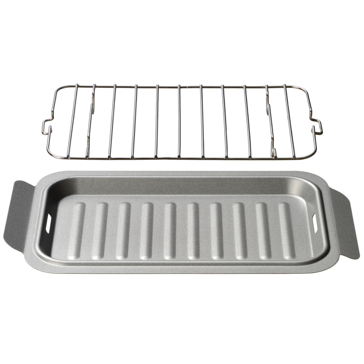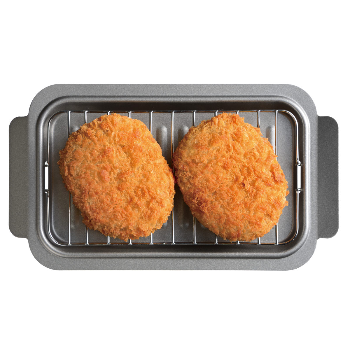 シンプルで使いやすい、トレーとアミのセットです。1~2人分の揚げ物の油切りにぴったりなサイズで、お弁当の揚げ物おかず作りにも使いやすいです。また冷めてしまったおかずを乗せて、トースターでの温め直しにもお使いいただけます。