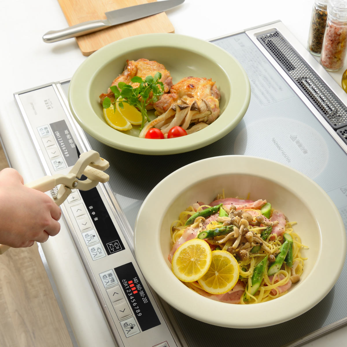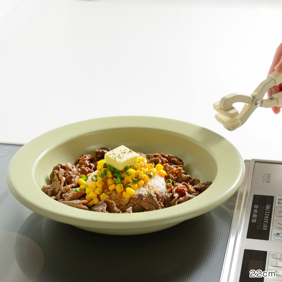 18cm(イエロー)、20cm(ホワイト)、22cm(グリーン)の3サイズ展開です。どのカラーも落ち着いたくすみカラーとなっており、揃えてお使いいただくことで、食卓をよりおしゃれにコーディネートできます。