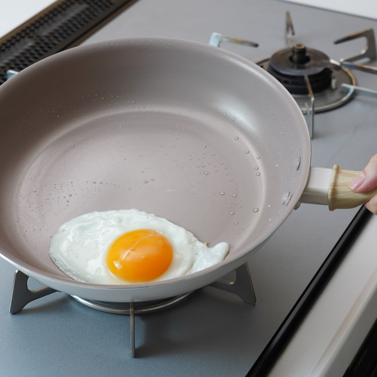 食材がスルッと離れる使い心地が特長で、IH・ガス火の両方に対応しています。外面はスタイリッシュな焼付塗装仕上げで、キッチンに馴染むデザインです。一般的な26cmサイズは、2~3人分の量が作りやすく、普段使いに重宝します。