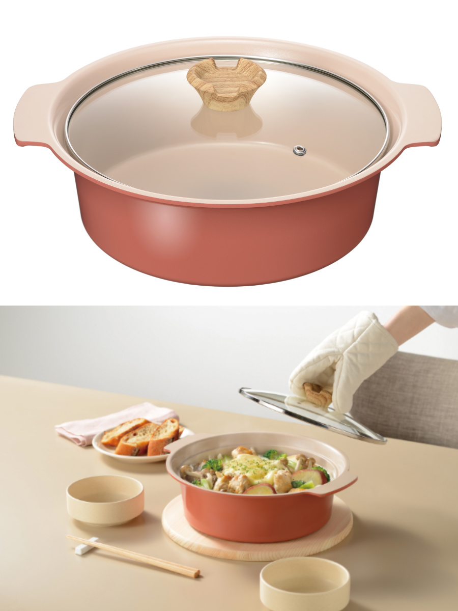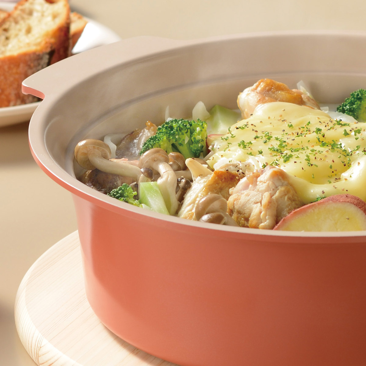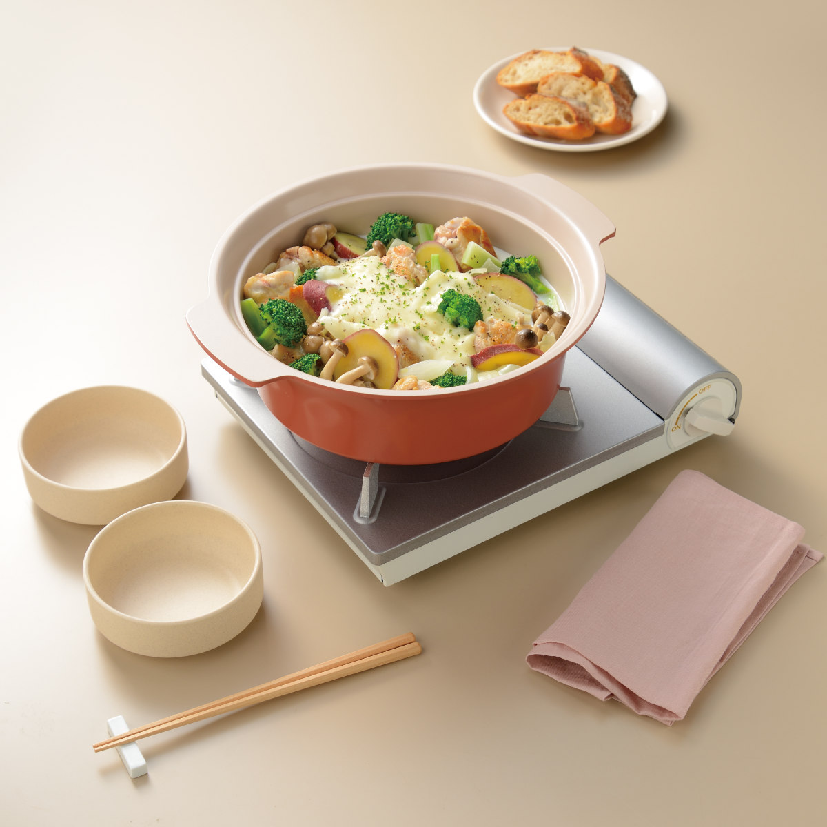 おうちにある食材で、満足感のあるおかず鍋が作れます。少ない食材でも華やかに見えて、食卓がパッと明るくなるおしゃれなカラーリングの卓上鍋です。