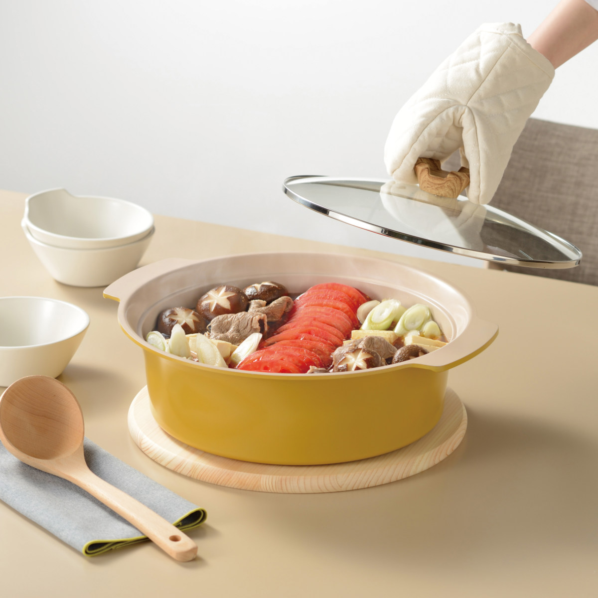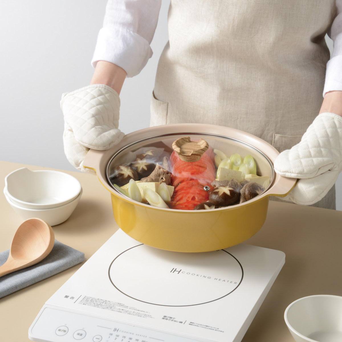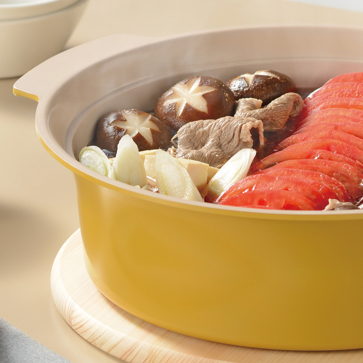 おうちにある食材で、満足感のあるおかず鍋が作れます。少ない食材でも華やかに見えて、食卓がパッと明るくなるおしゃれなカラーリングの卓上鍋です。
