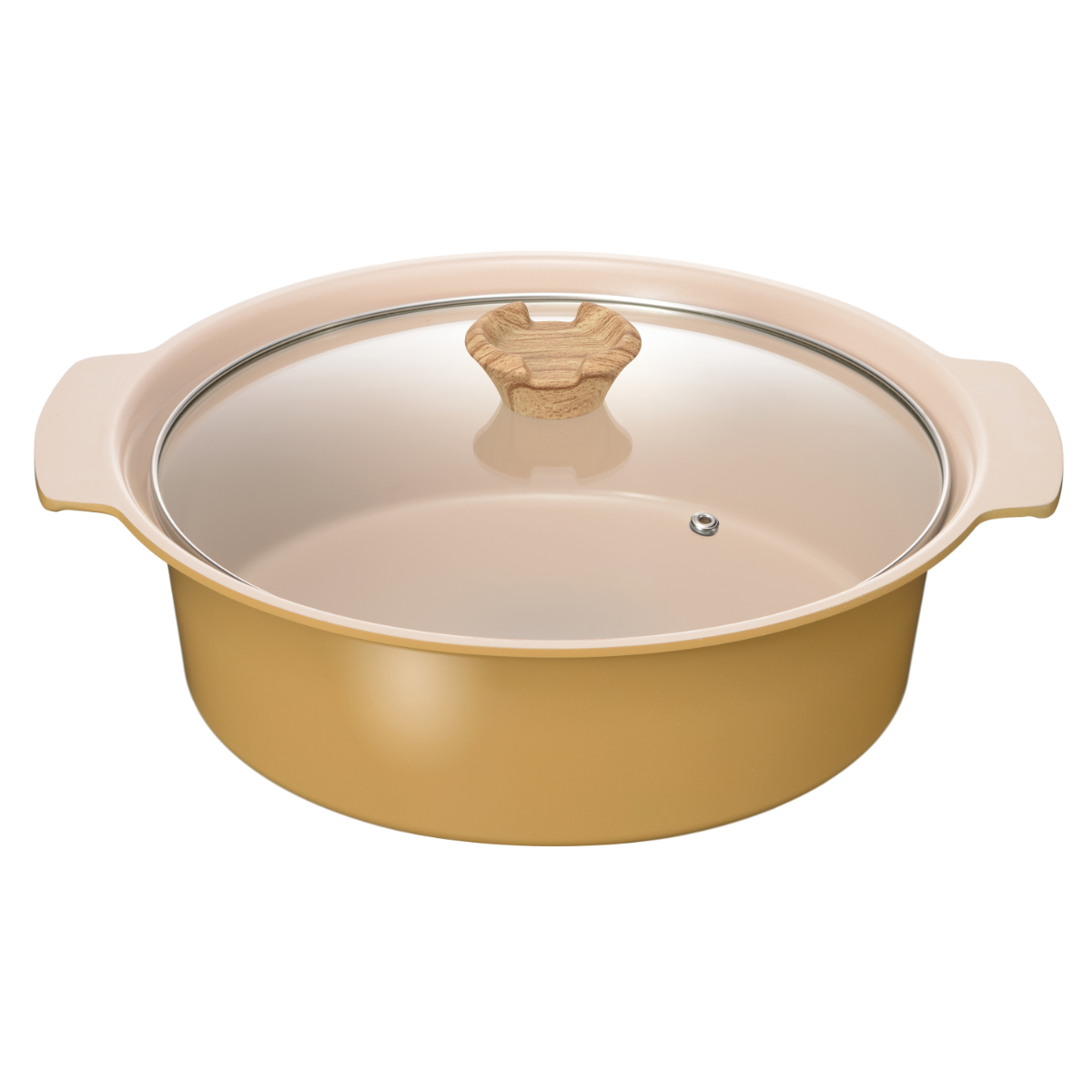 卓上鍋 アルモンデ IH対応 27cm ステンレス製 ( ガス火対応 オール熱源対応 両手なべ ふっ素加工 軽い なべ ガラス蓋 27センチ 4人用 5人用 フッ素加工 アルミ製 両手 鍋 フタ付き 季節鍋 卓上なべ 軽量 )