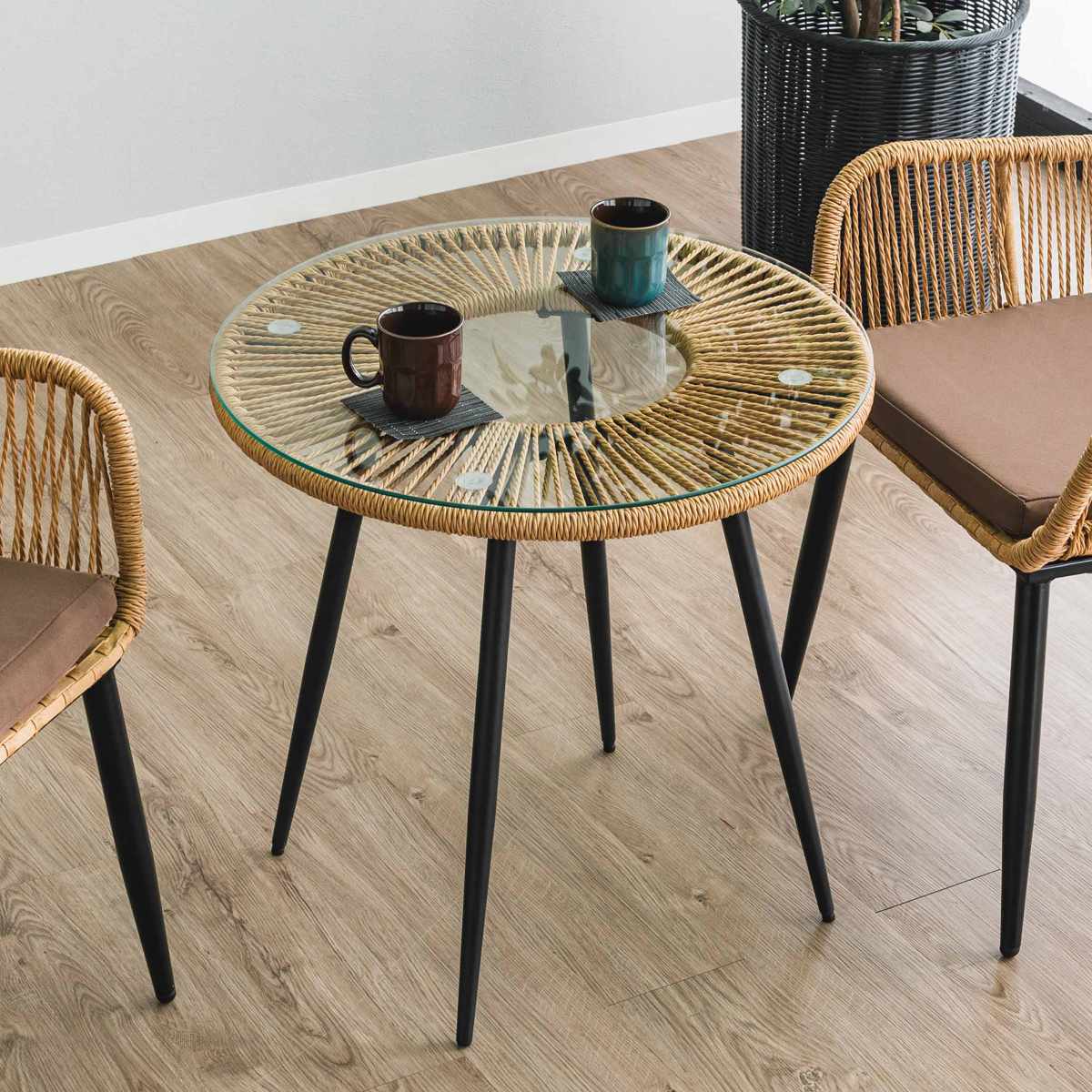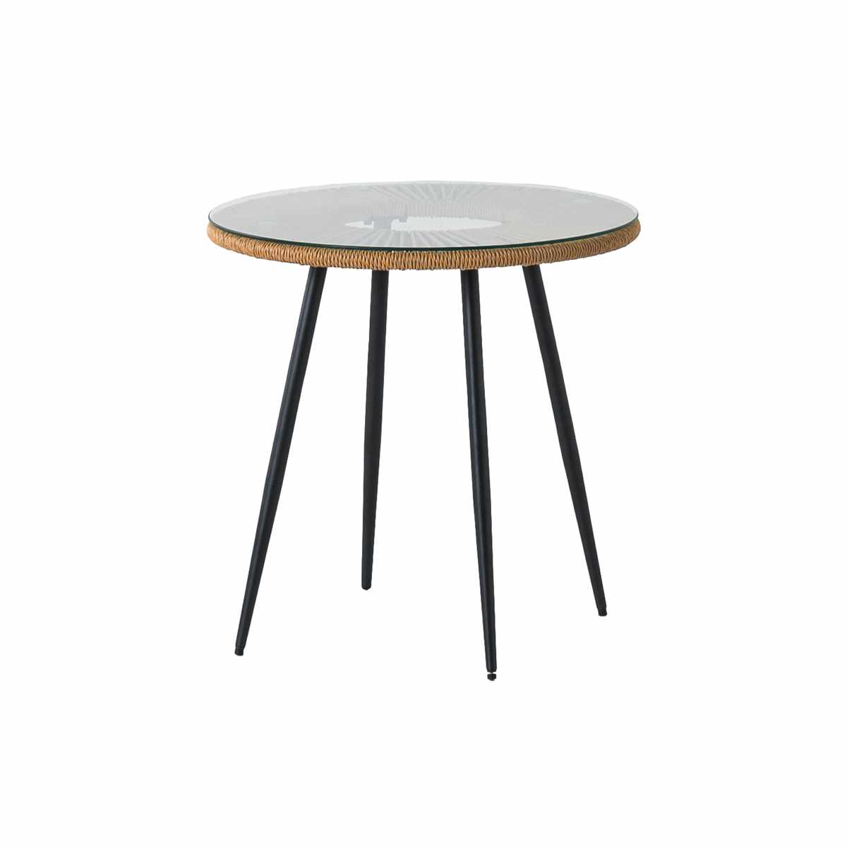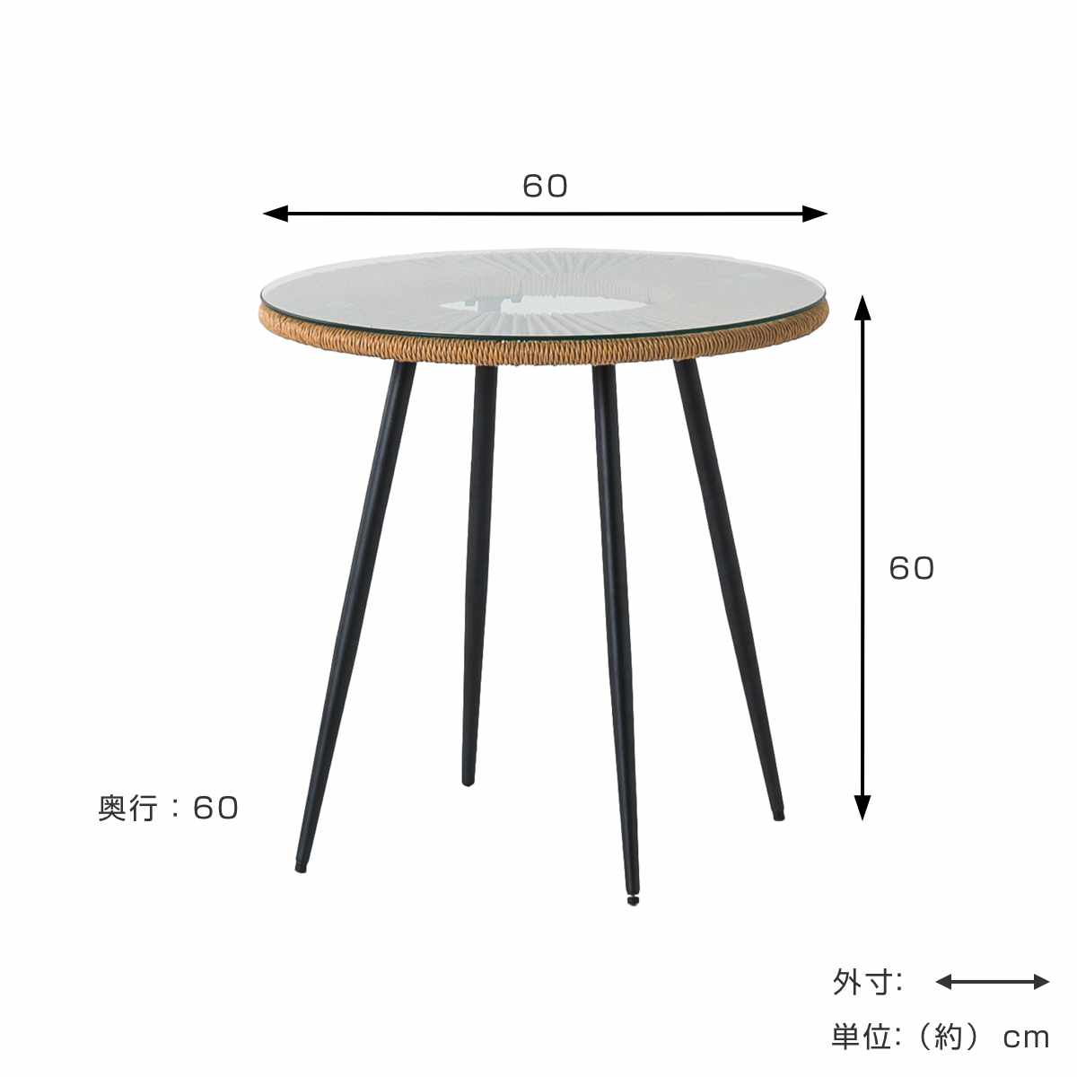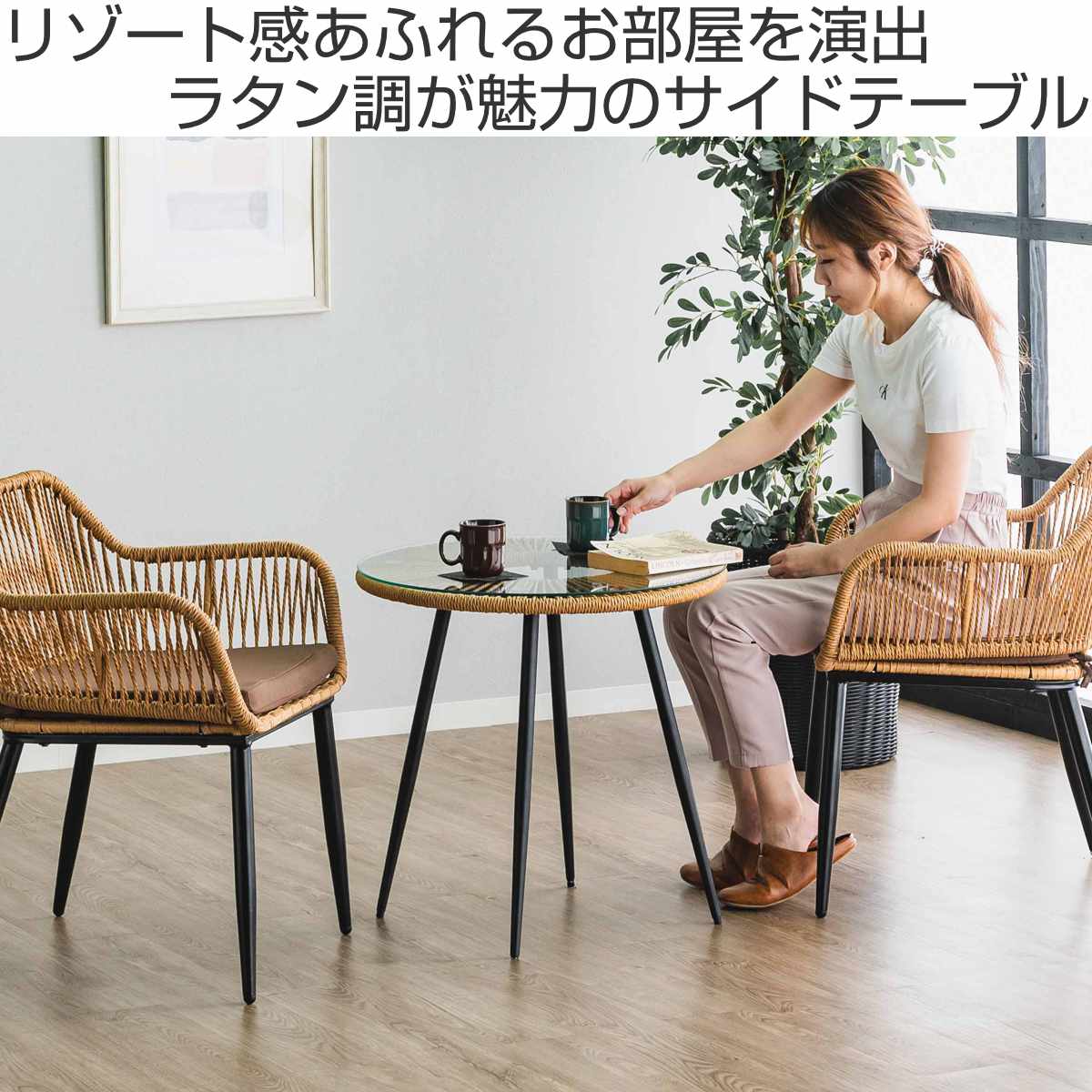 サイドテーブル 直径60cm ラタン調 ガラス マーレ ( テーブル カフェテーブル 籐 ガラステーブル 丸 人工ラタン 机 丸テーブル リゾートテーブル 円形 スチール脚 おしゃれ ナチュラル インテリア 室内 )
