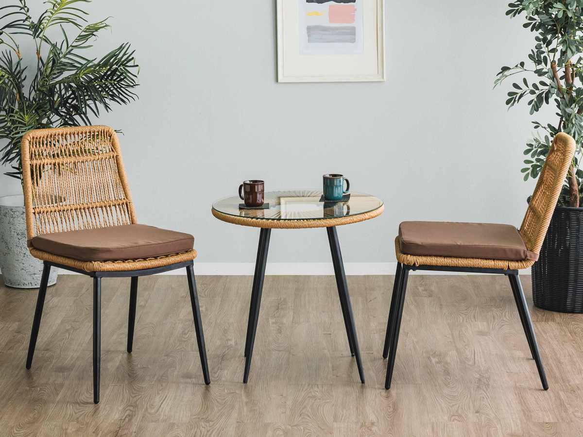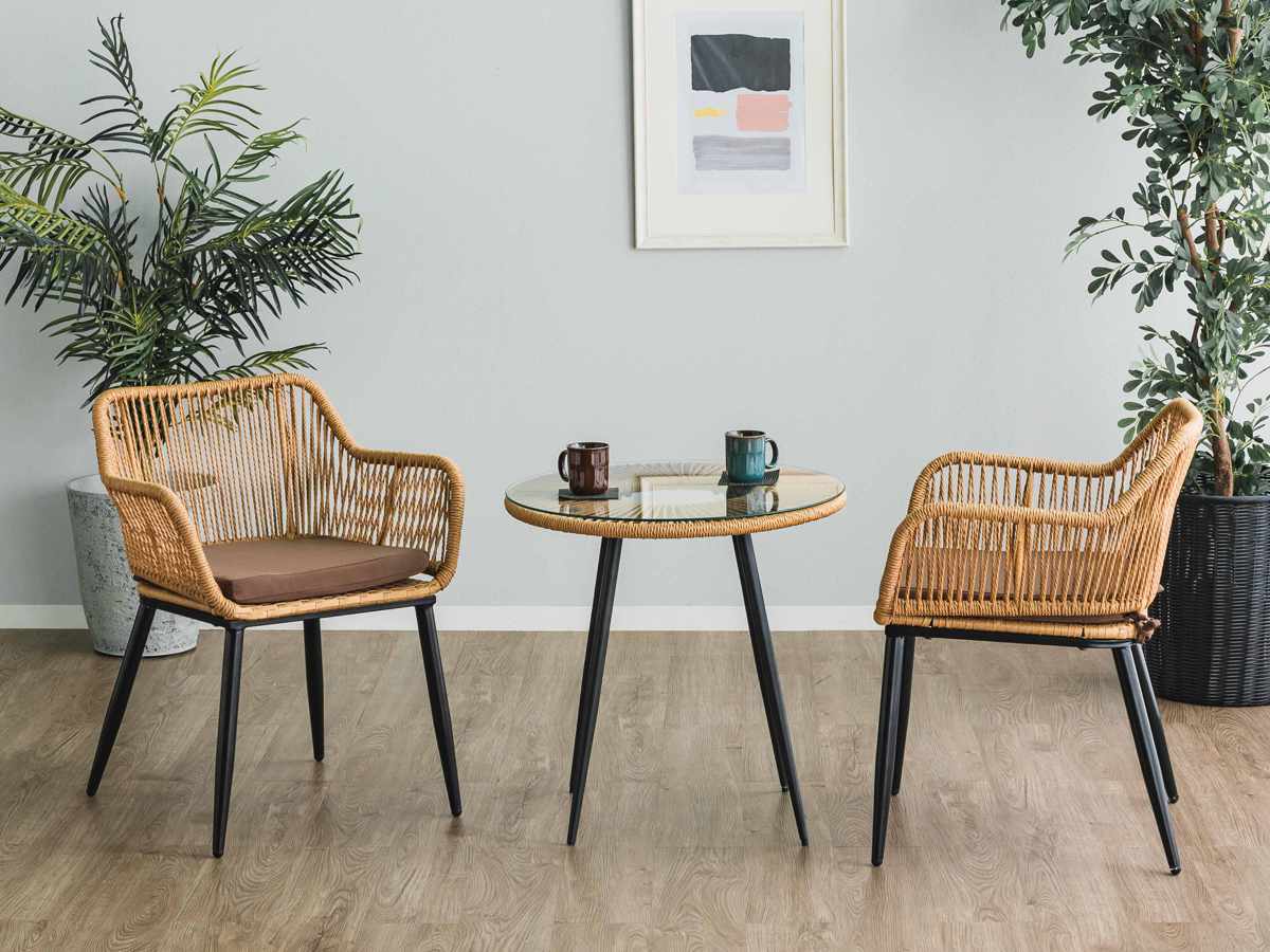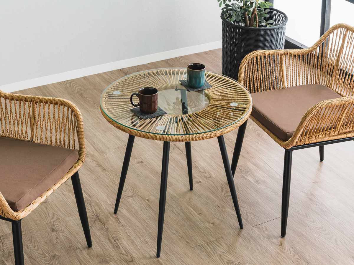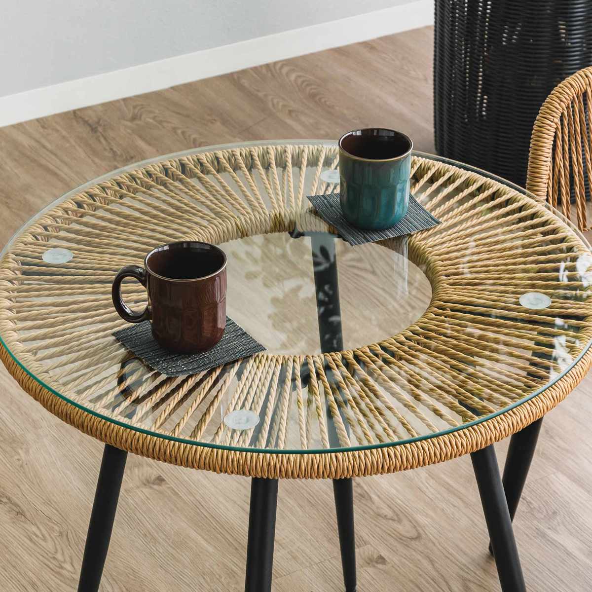 | 材質 | 籐(PEコード)、強化ガラス、スチール |