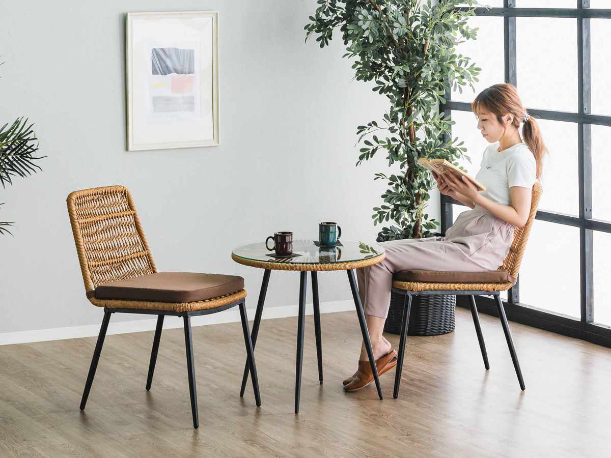 耐久性が高く、水や汚れに強いポリエチレン製の人工ラタンを使用。お手入れがしやすく、長くお使いいただけます。また、天然ラタンのようなささくれやめくれが出にくいため、小さなお子様のいるご家庭でも安心です。