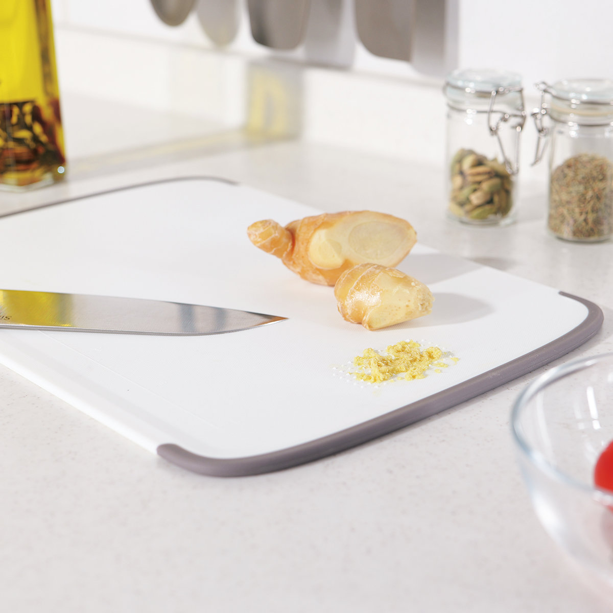 まな板の縁に滑り止めが付いているので、しっかり固定されて安心です。手元が安定しスムーズに食材を切り進められます。