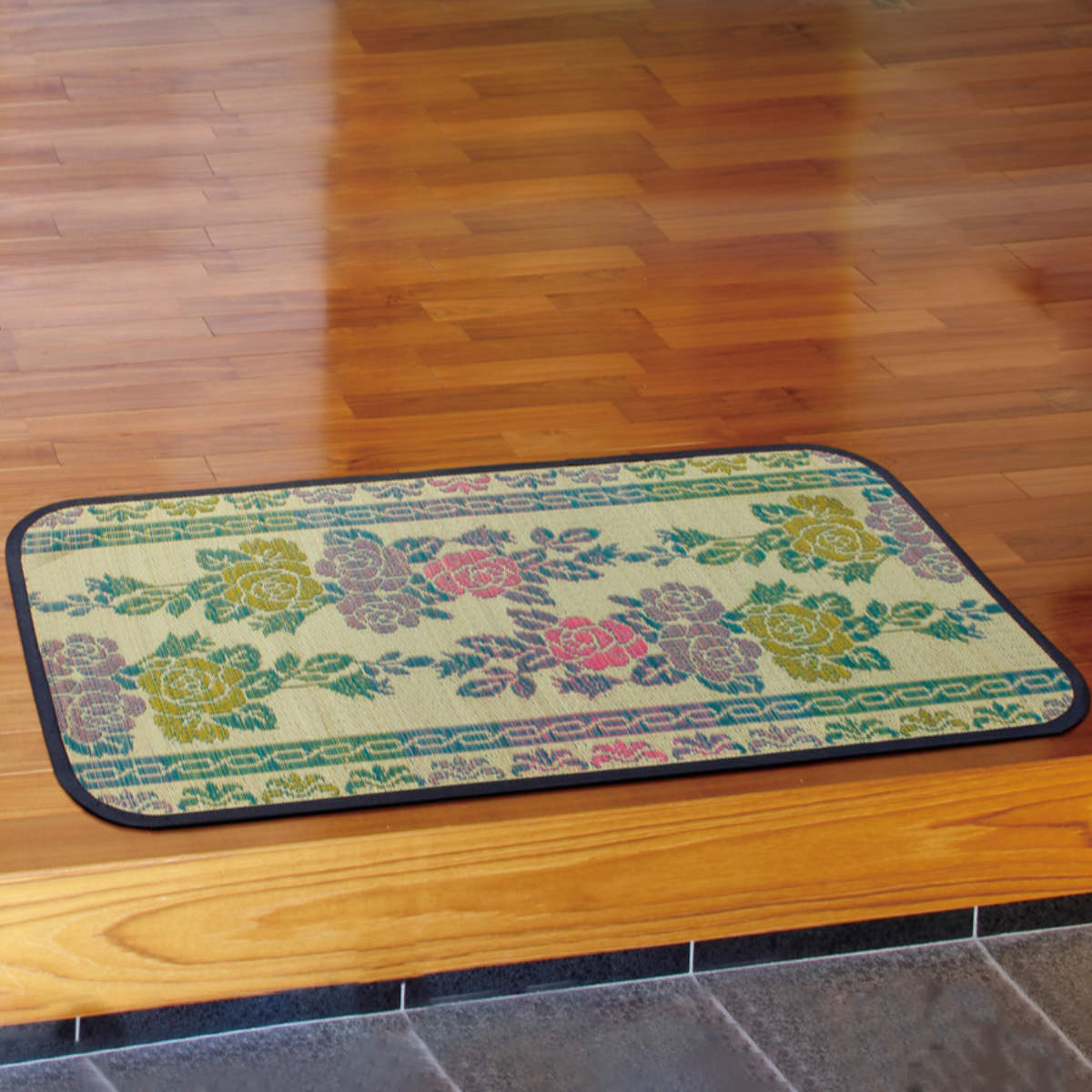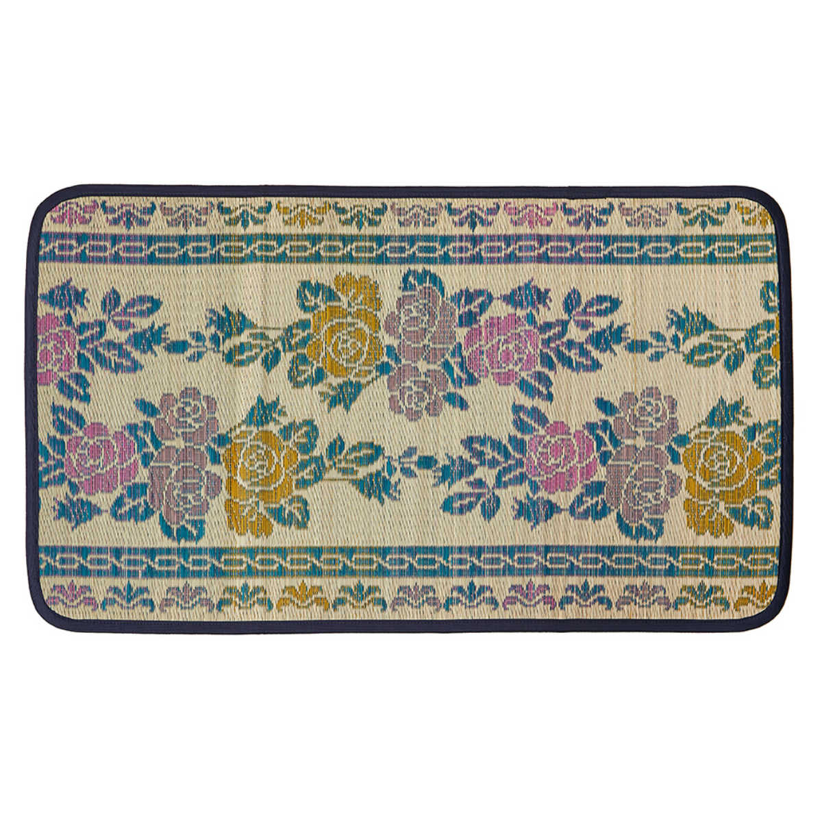 玄関マット 65×110 い草玄関マット 涼華 室内 ( い草 マット ラグ 敷物 花柄 薔薇 インテリア おしゃれ 薄手 軽量 幅110cm キッチン リビング 寝室 洗面所 ランドリー 室内用マット 玄関 脱衣所 洗面 敷き物 バラ 夏 )