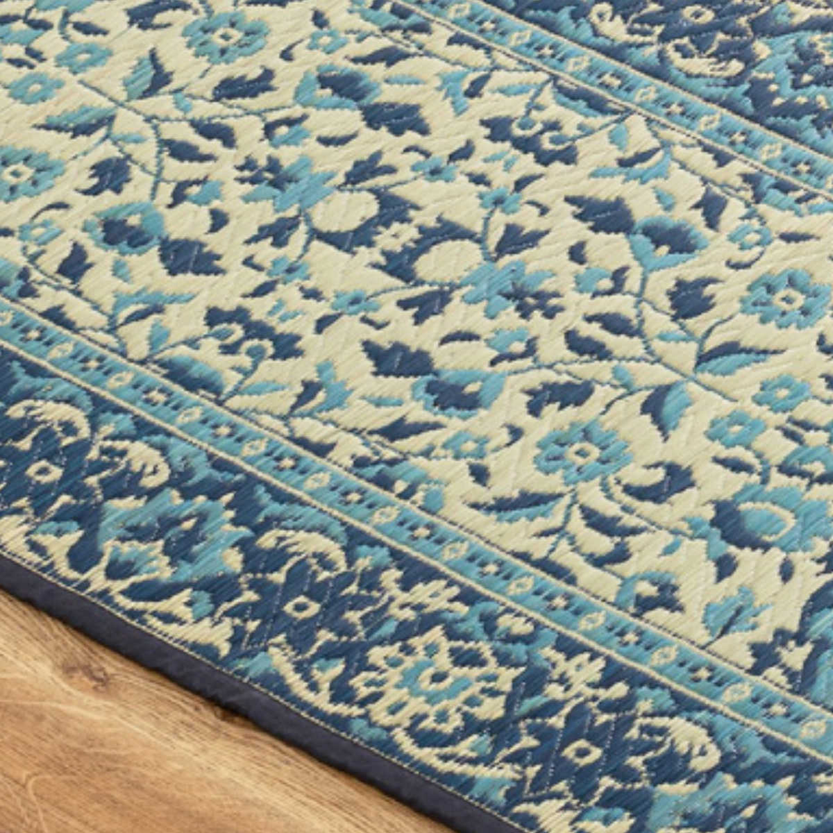 三重織でしっかりと厚みを持たせ、ペルシャ絨毯を思わせる繊細なデザインを表現した洋風い草マットです。美しく染め上げたい草を複雑に織り上げることで、気品ある模様が浮かび上がります。爽やかな花柄が玄関をエレガントに彩ります。