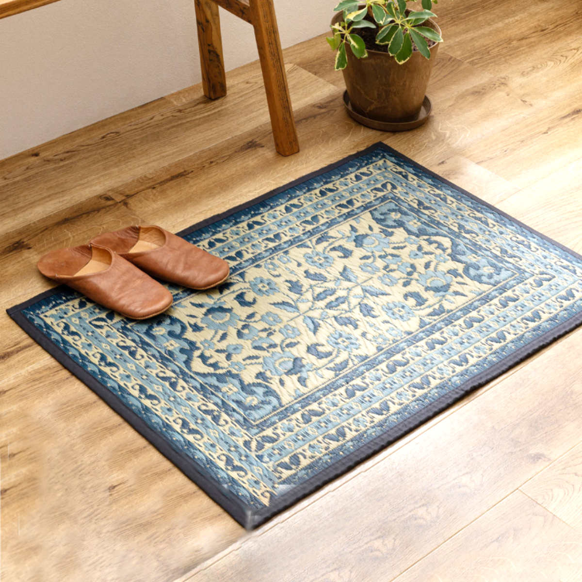 玄関先を華やかに彩る洋風い草マット 室内用【70×120cm】