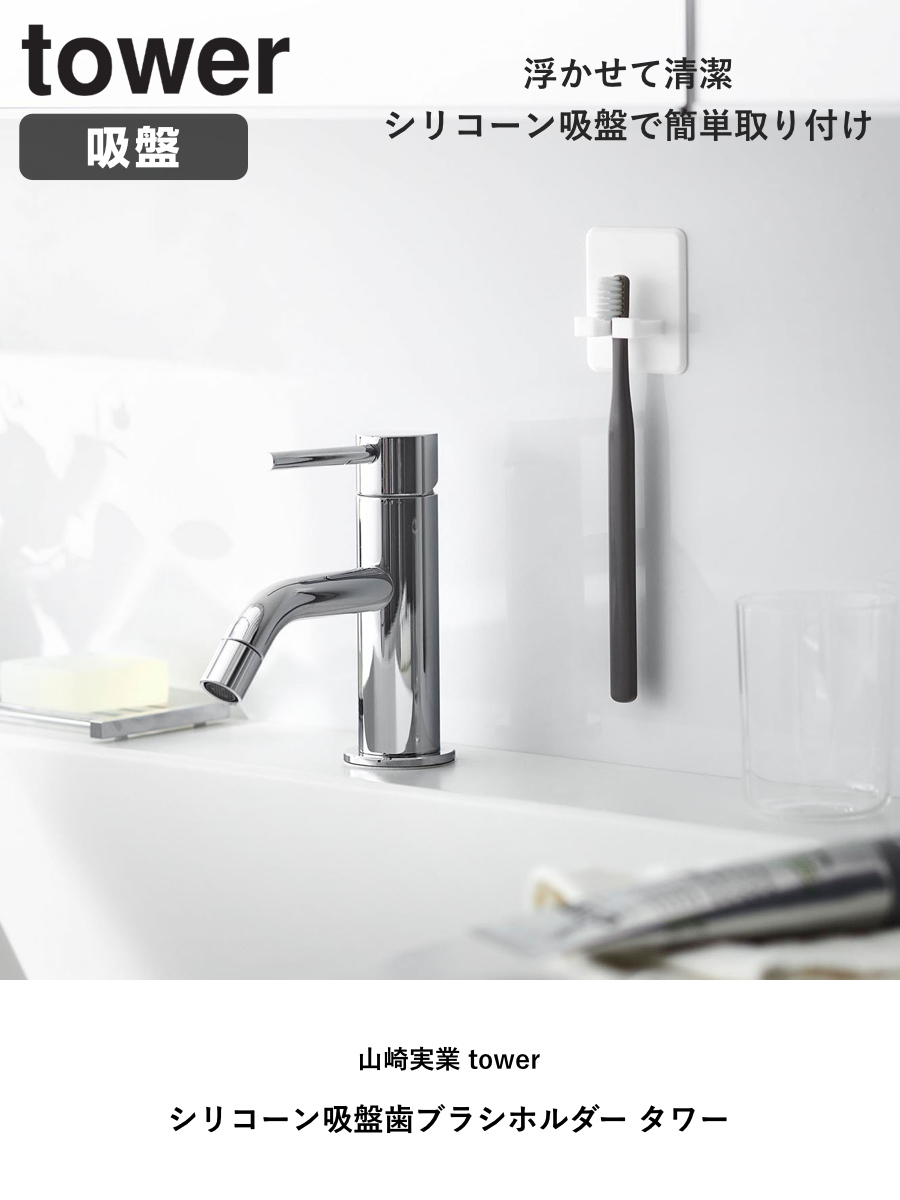 山崎実業 tower シリコーン吸盤歯ブラシホルダー タワー ( 4903208102964 タワーシリーズ シリコーン吸盤 歯ブラシホルダー シリコーン 吸盤 歯ブラシ ホルダー フック 吸着 歯ブラシフック 掛け 小物 浮かせて収納 浮かせる収納 ) 【ブラック】