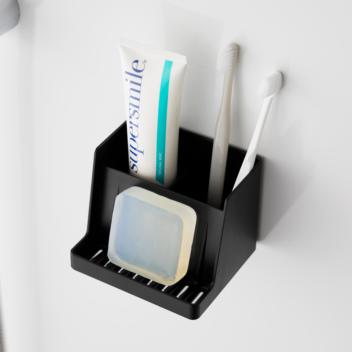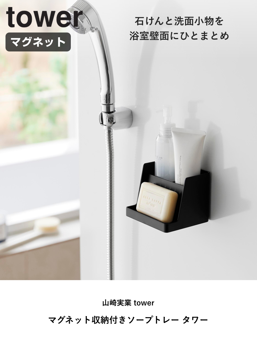 山崎実業 tower マグネット収納付きソープトレー タワー ( 4903208103169 タワーシリーズ ソープトレー マグネット 磁石 収納付き ソープ トレー 収納 ラック 浴室収納 石鹸 ソープディッシュ ディスペンサー チューブ ) 【ブラック】