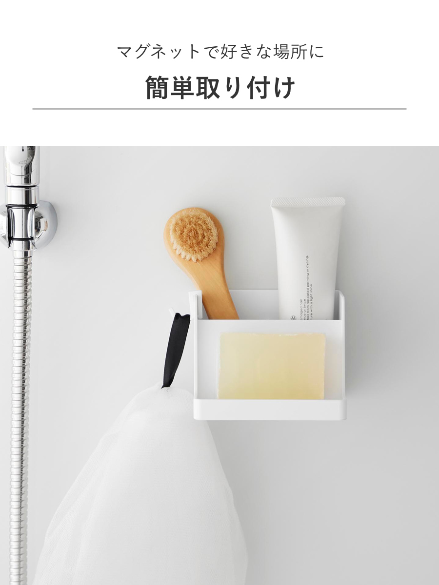 マグネットで取り付けできるソープトレーです。お好きな場所に浮かせて設置できます。強力なマグネット使用で、外れにくく快適にお使いいただけます。また、壁面を傷付けにくく錆びにくいラバータイプのマグネットなのも嬉しいポイントです。