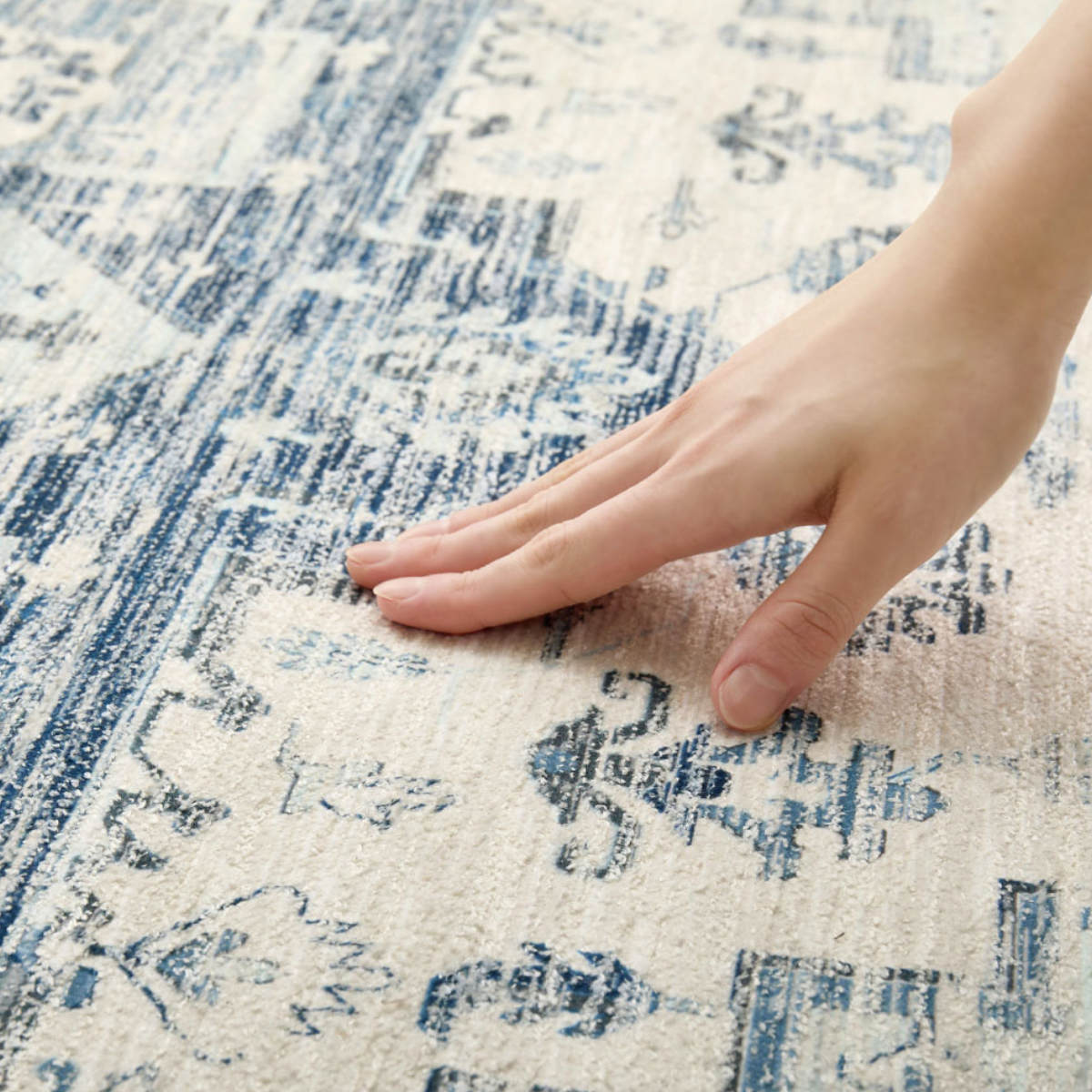 糸を毛羽立たせて柔らかな質感に仕上げたシェニール糸を使用し、ジャガード織で繊細な模様と立体感を美しく表現しています。高級感あふれる上質なマットです。