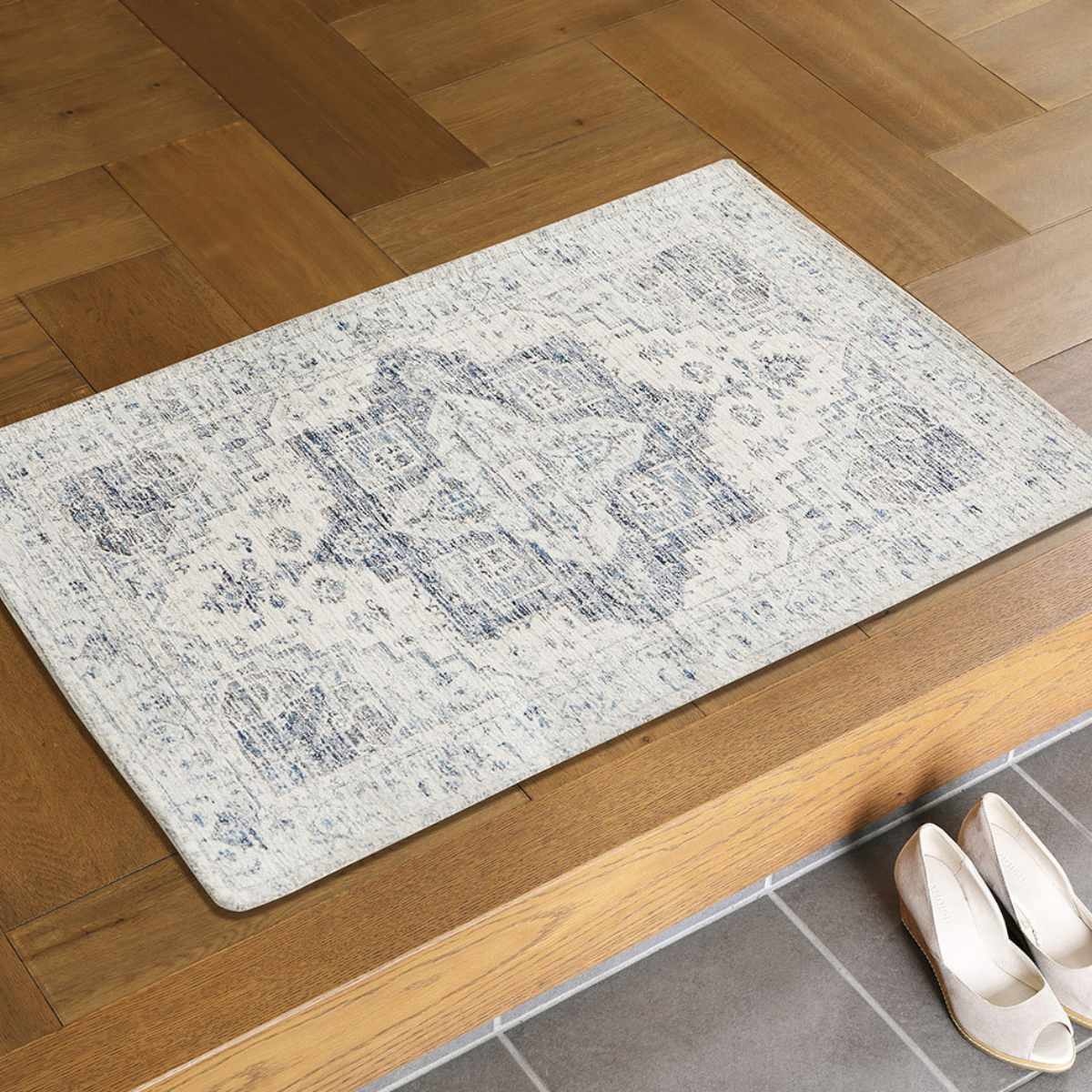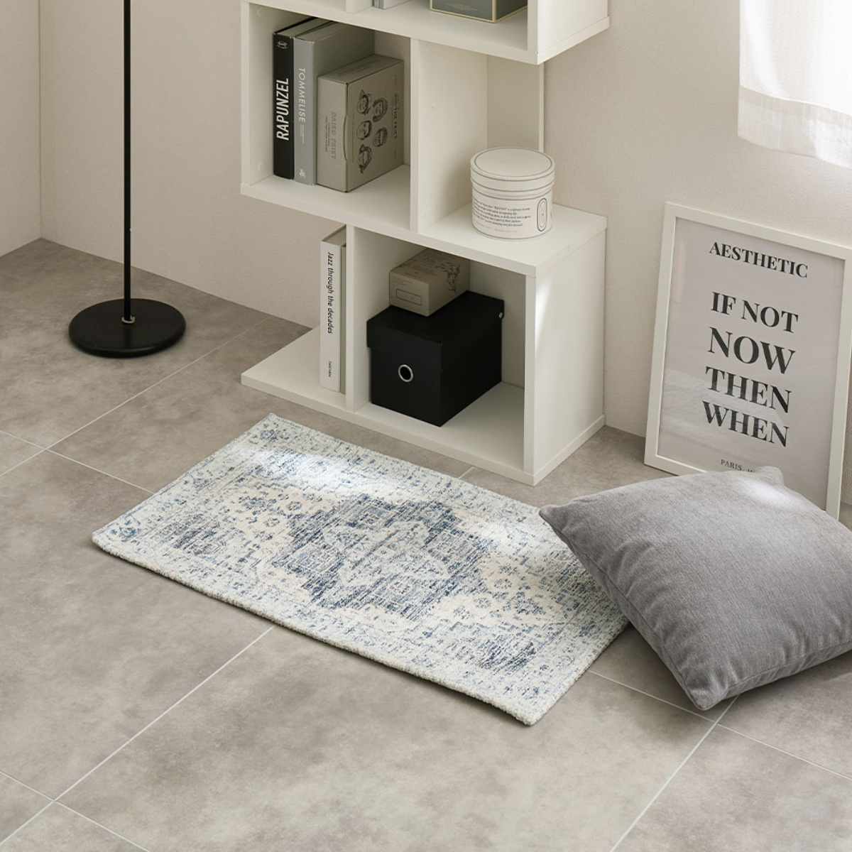 やさしい色合いが空間に重たさを感じさせず、ナチュラル、北欧風、和モダンなど、幅広いテイストのインテリアに馴染みます。ひとり暮らしの玄関に適したコンパクトサイズで、洗面所のマットにもおすすめです。