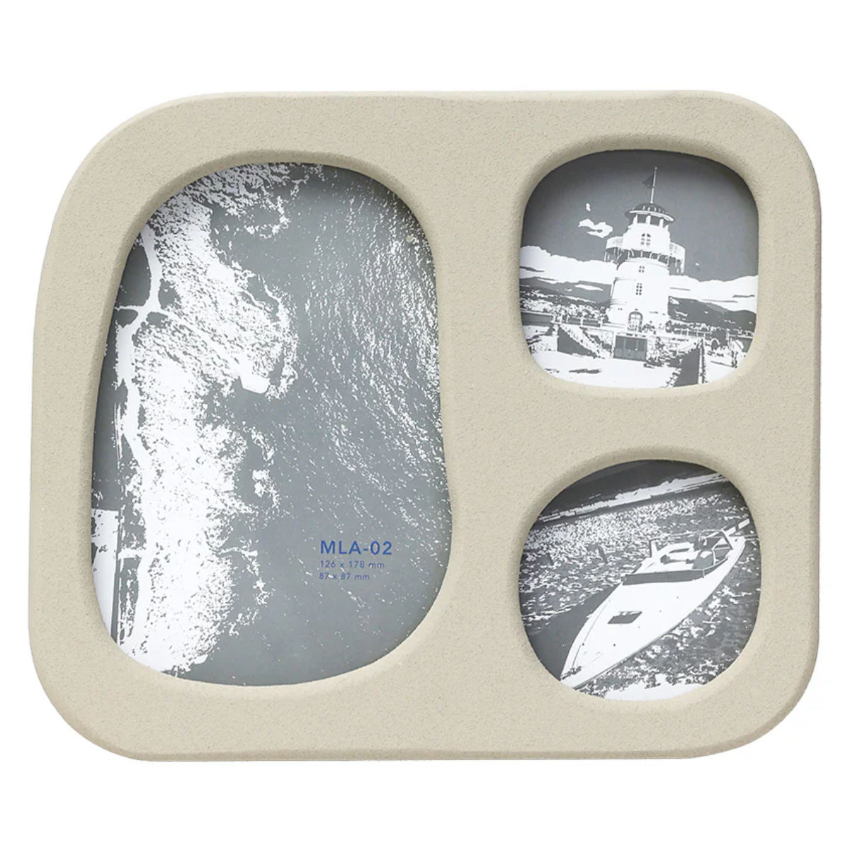 フォトフレーム MLA-02 ( 写真立て フォトスタンド 写真 フレーム ゆがみ 曲線 インテリア おしゃれ 複数枚 3枚 3窓 かわいい 壁掛け 置き型 柔らかい 雑貨 飾る 玄関 作品 額縁 イラスト ニッチ トイレ 縦 韓国インテリア ) 【ベージュ】