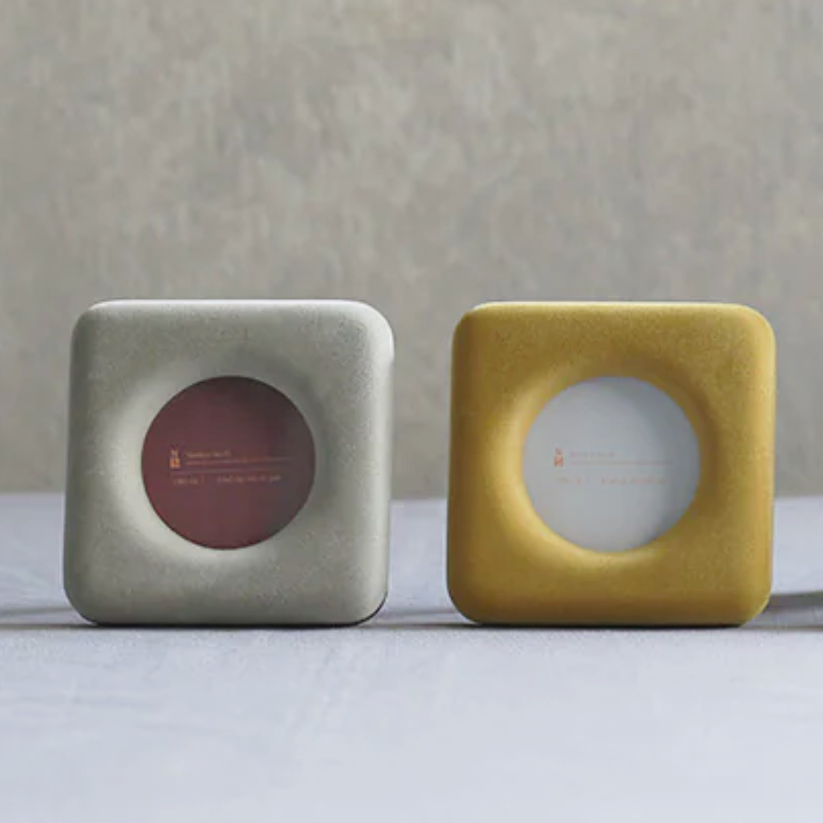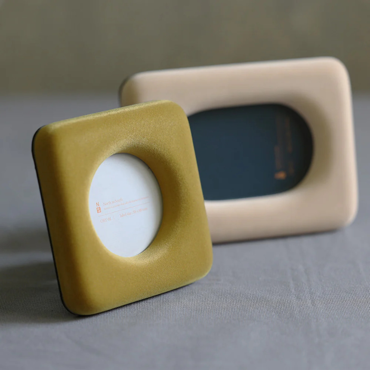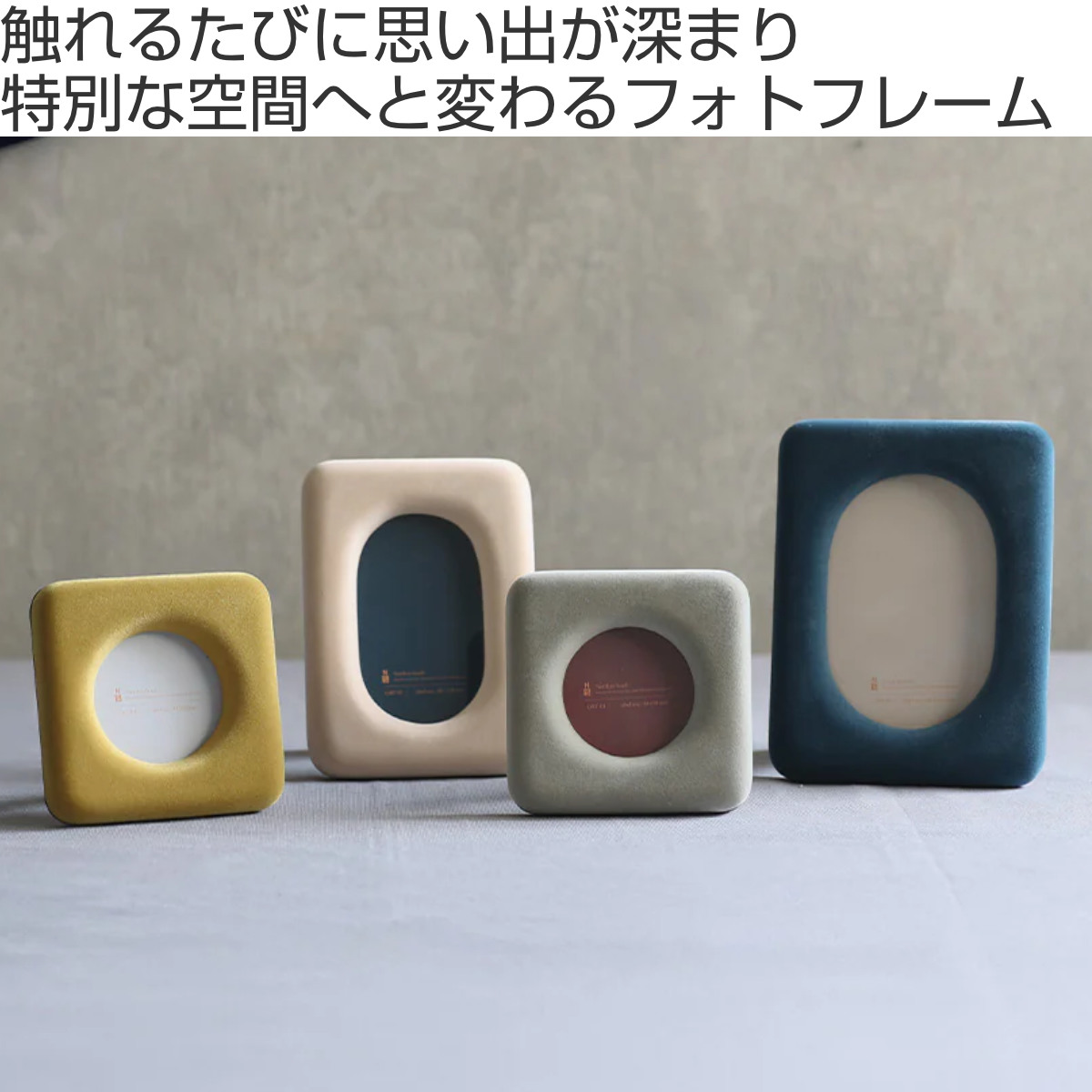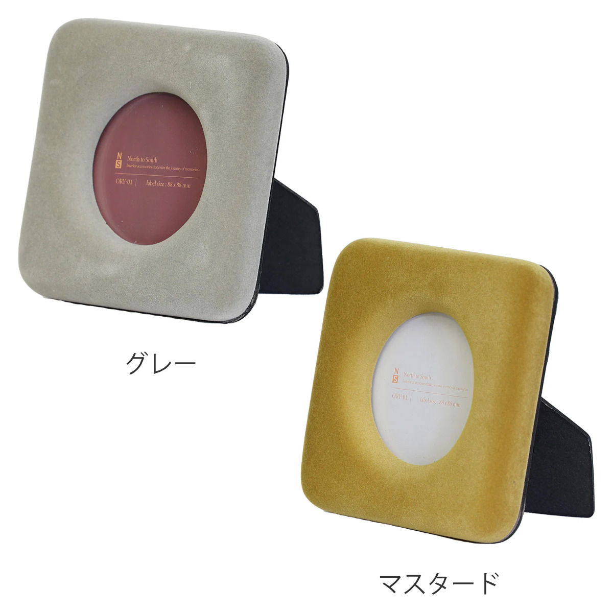 フォトフレーム ORY-01 フロッキー加工 ( 写真立て フォトスタンド 写真 フレーム 置き型 ミニ 小さめ ましかく 正方形 ベルベット 幅13.5cm おしゃれ かわいい ましかくプリント アクセサリートレイ 丸み インテイリア 高級感 ) 【マスタード】