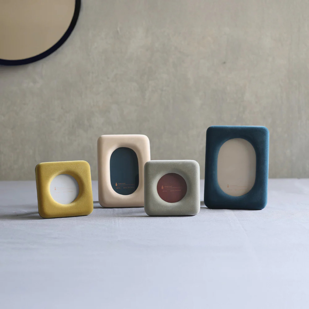 まるでベルベットのような柔らかく深みのある質感のフォトフレームです。フロッキー加工を施したフレームは、指先に触れた瞬間から上質さを実感でき、視覚だけでなく触覚までも満たしてくれます。お気に入りの写真や思い出の1枚を飾れば、日常の景色がぐっと豊かに、特別な空間へと変わります。
