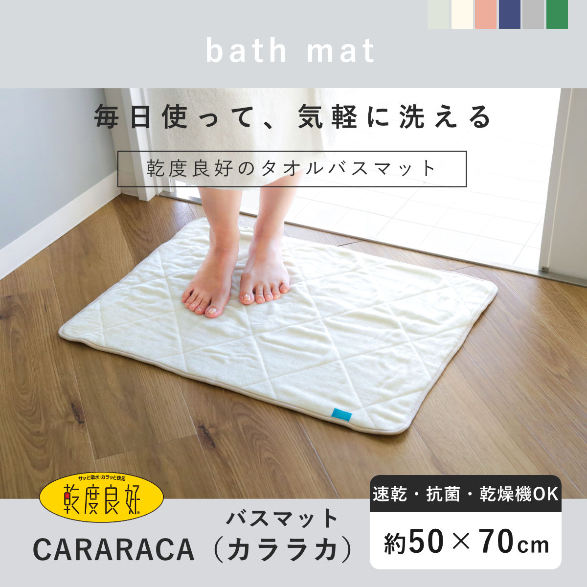 バスマット 50×70cm カララカ 洗濯機 乾燥機使用OK ラベル タオルバスマット タオル地 ( 足ふきマット 風呂マット 抗菌 防臭 乾度良好 吸水マット お風呂マット 足拭きマット 洗面マット 速乾 銀イオン ふわふわ 重ねタオル 70 50 ) 【グリーン】