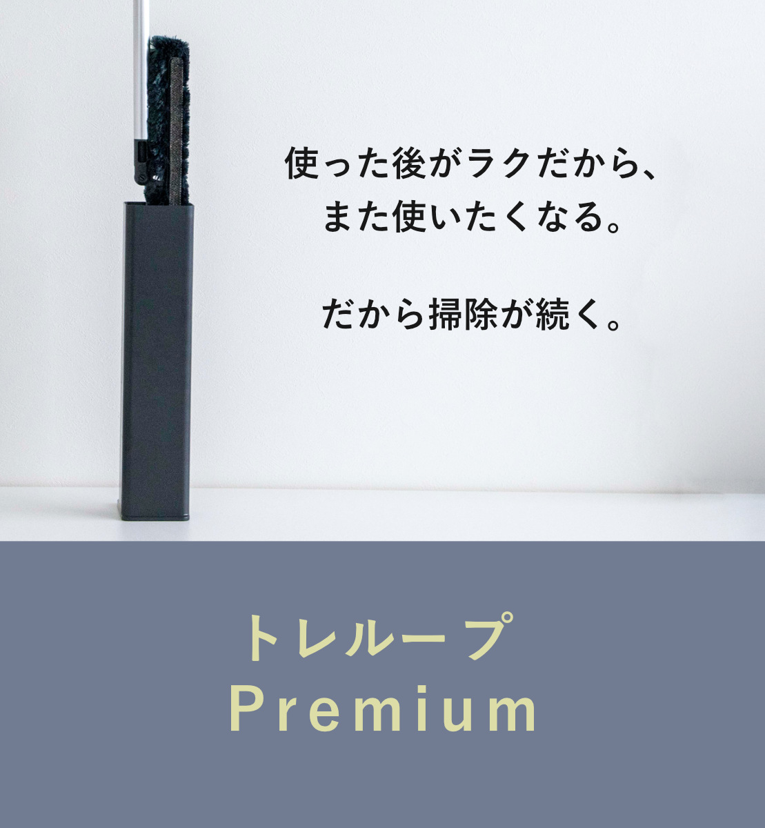 激落ちくん ホコリ取り トレループ 階段用 床用 ワイパー ケース付き ( Premium フローリングワイパー 長さ34.5~84cm ケースに通すだけ クリーン機能付き ハンディモップ ケース モップ 時短 掃除グッズ 掃除用品 ) 【グレー】