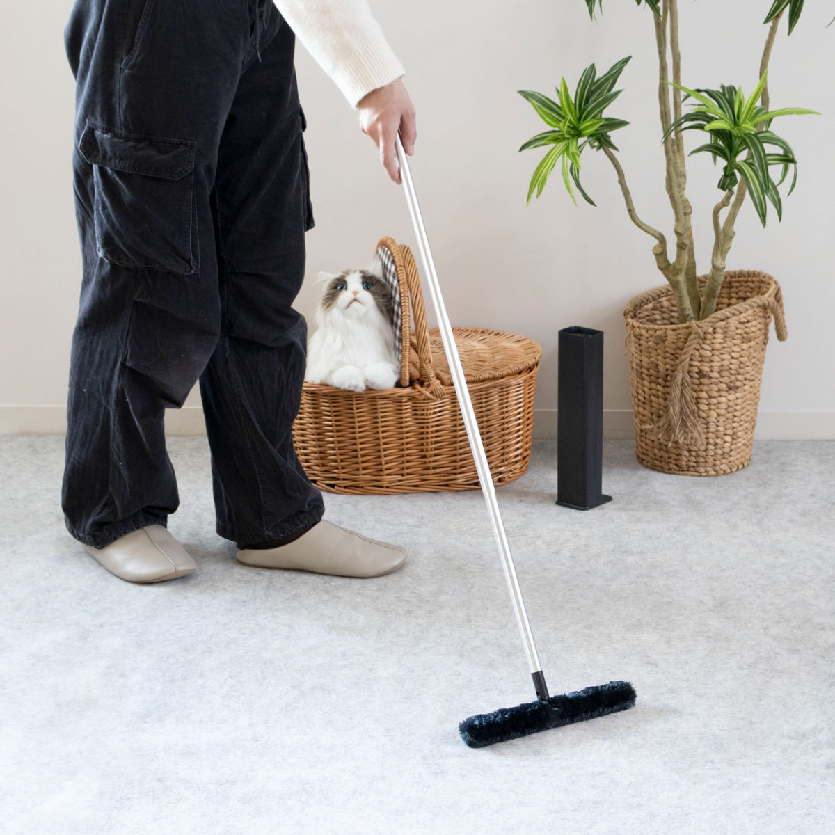 シンプルでスリムな形状のケースだから、お部屋にそのまま置いても邪魔にならず馴染みます。いつでも手に取りやすい場所に置いて、気付いた時にサッとお掃除できます。