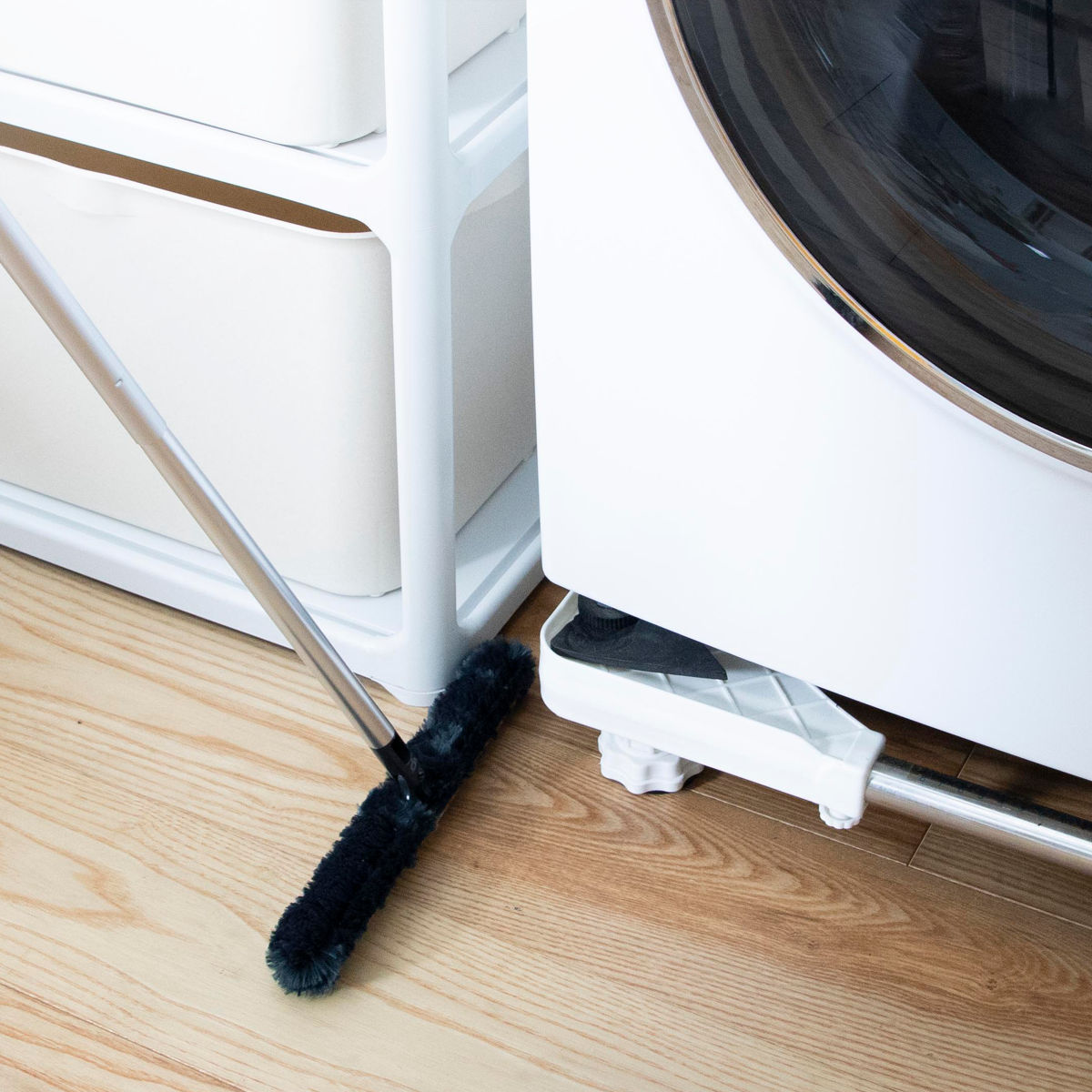 高密度繊維のモップが、細かなホコリまでしっかりキャッチ。モップが立つので家具・家電のすき間にもスッと入り込み、溜まった汚れをしっかり落とします。