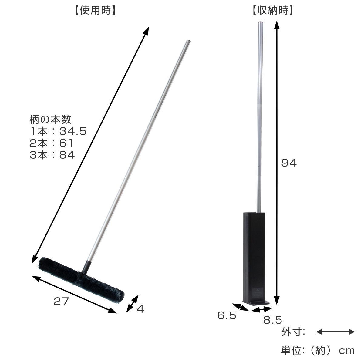 | サイズ | 収納時:約 幅6.5×奥行8.5×高さ94(cm) 使用時長さ:34.5/61/84(cm) |
