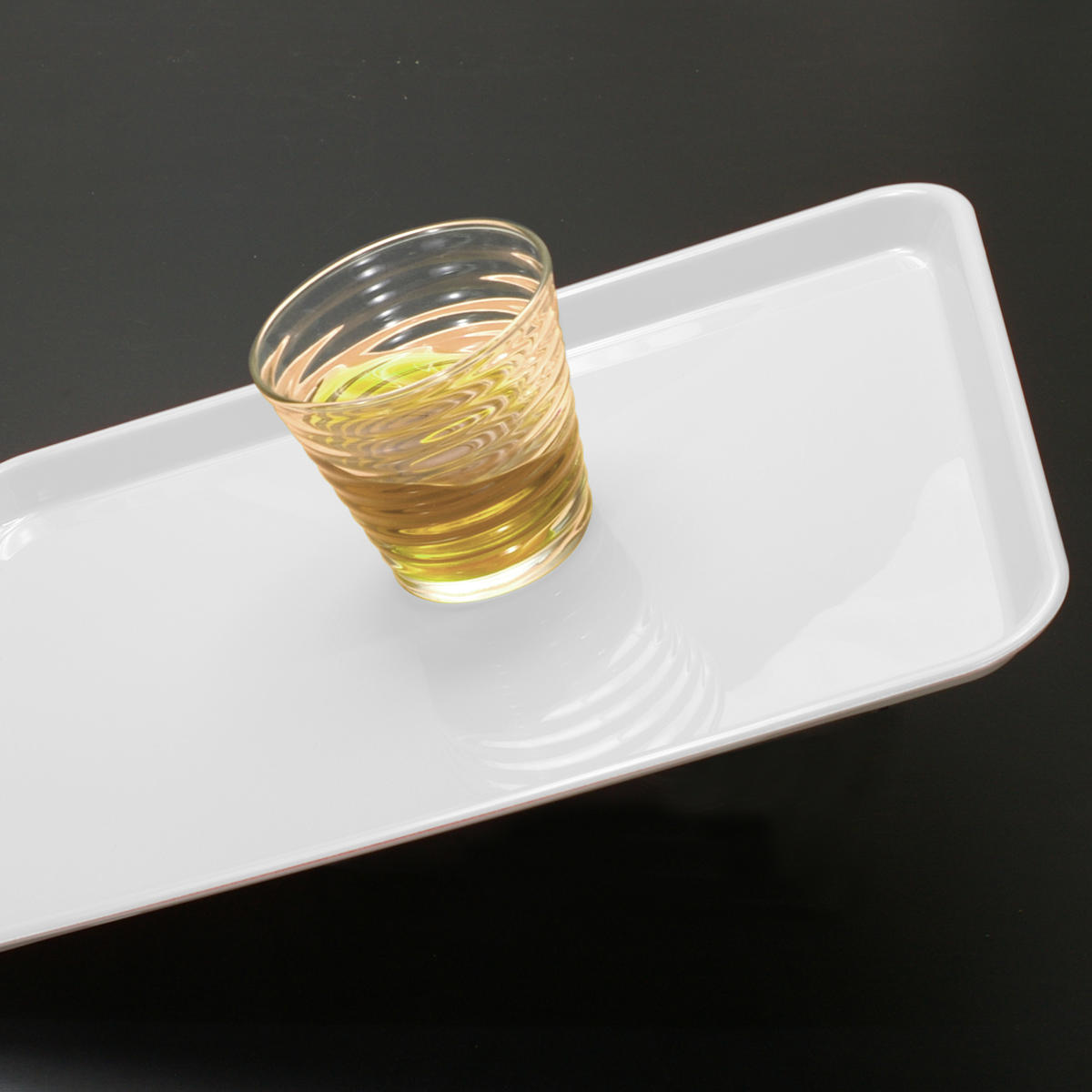 シンプルなスクエアデザインのトレーです。食卓まで運んだらそのままランチョンマットとしても使えます。表面には滑り止め加工が施されており、グラスやプレートがずれにくく、安心して使えます。ゆったり41cmサイズで複数の食器も一度に運べます。
