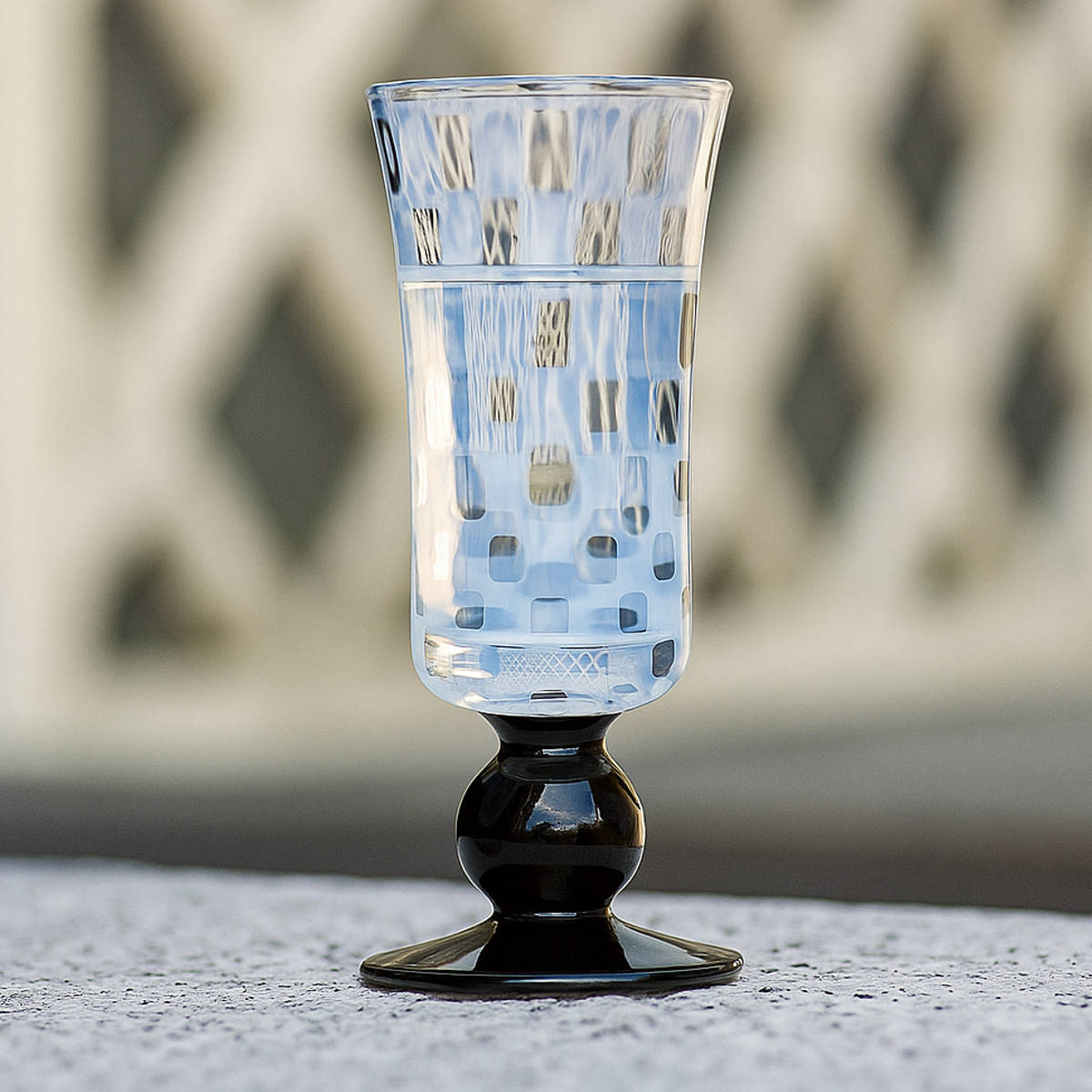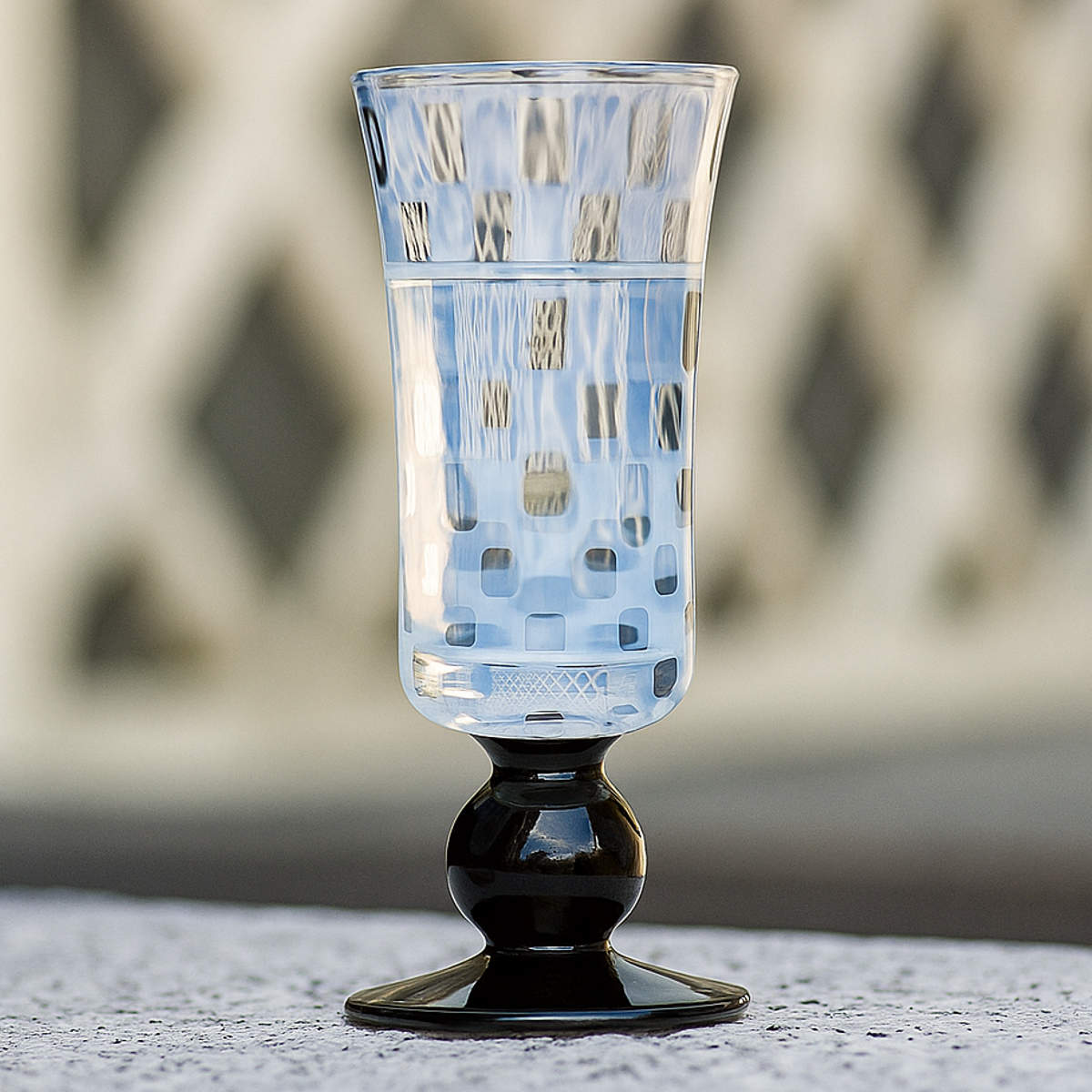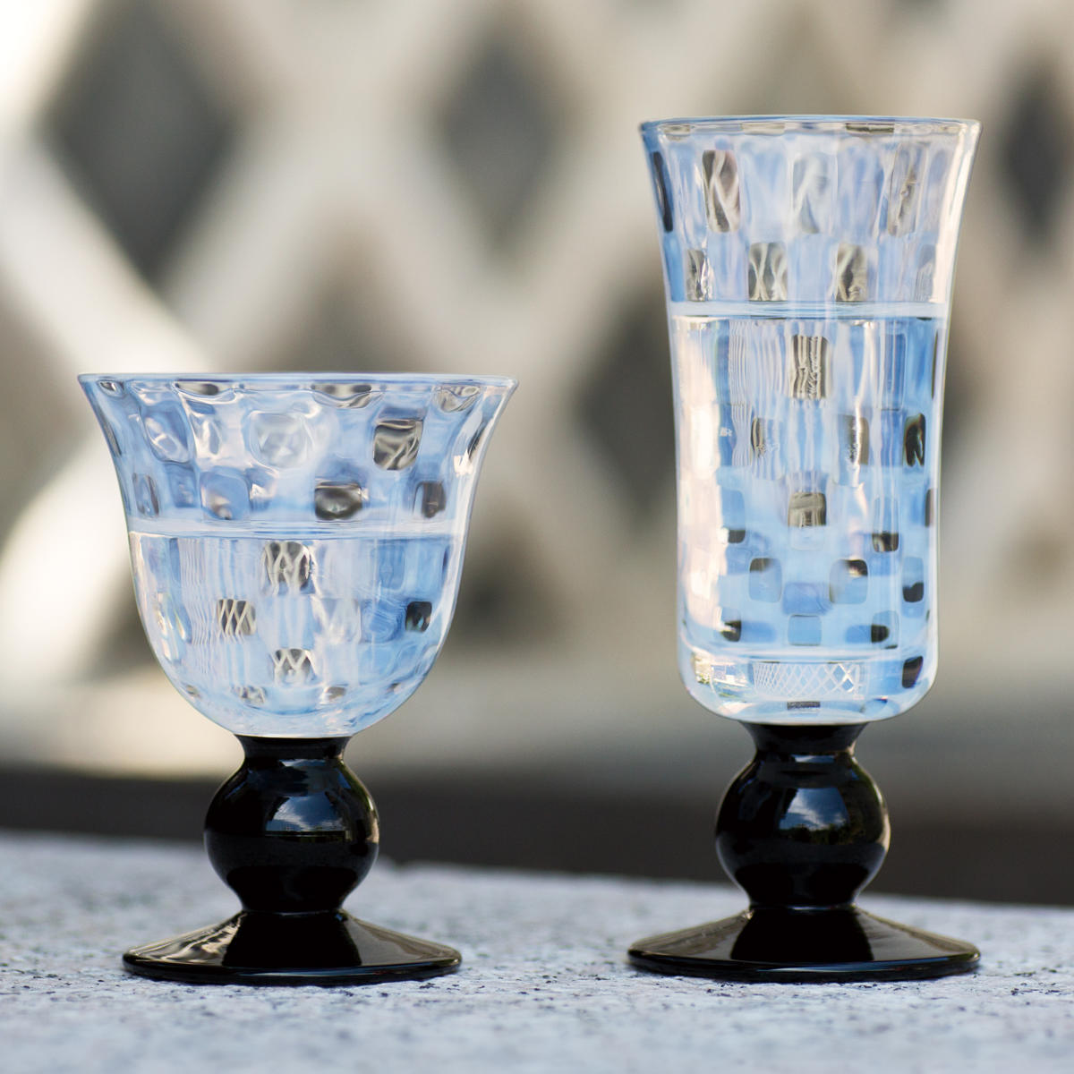 乳白色と黒のステムが美しい酒杯