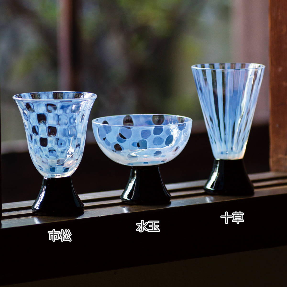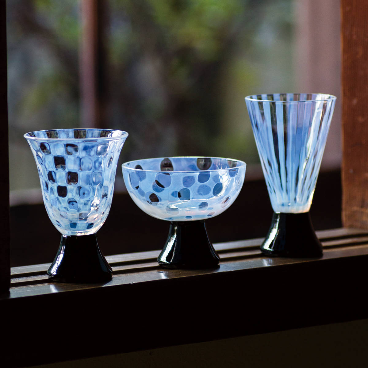 廣田硝子 杯 台付き 酒杯 市松 水玉 十草 ( ガラス 日本製 盃 酒器 グラス デザート 食器 コップ おしゃれ 大正浪漫硝子 レトロ ) 【水玉】