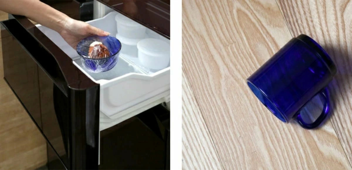 冷蔵庫からそのまま電子レンジへ入れて温めても、熱衝撃耐性に優れているので、急激な温度変化に対します。また、一定の高さから鉄球が落ちても平気なデュラレックスは通常のガラスの2.5倍の強度があります。もし万が一割れてしまった場合でも、細かい破片に砕けるのでケガをしにくいです。