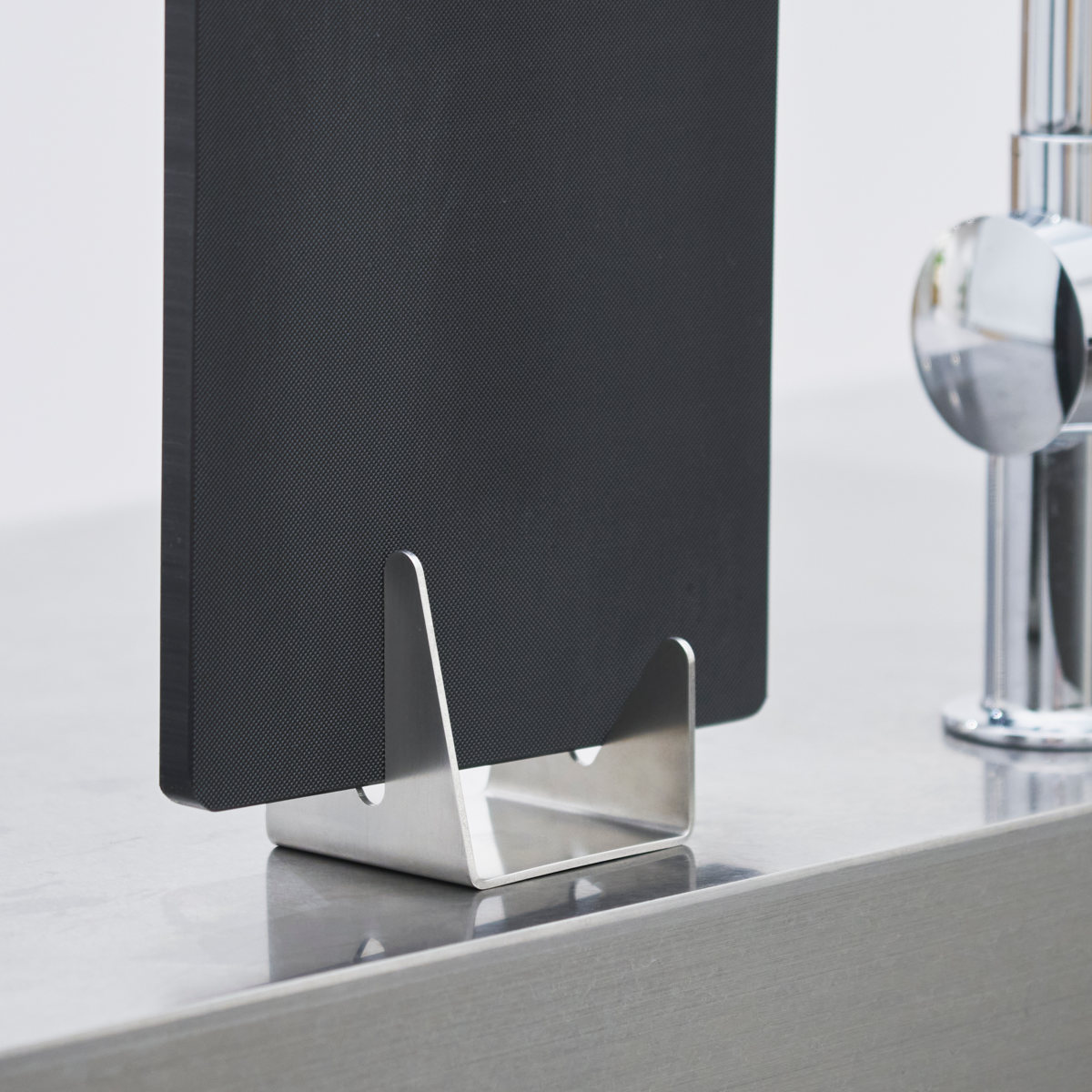 厚み約2cmまでのまな板を垂直に立てられるまな板スタンドです。まな板を垂直に立てることで、水切れが早いことに加えて、スッキリとしたキッチンを演出してくれます。