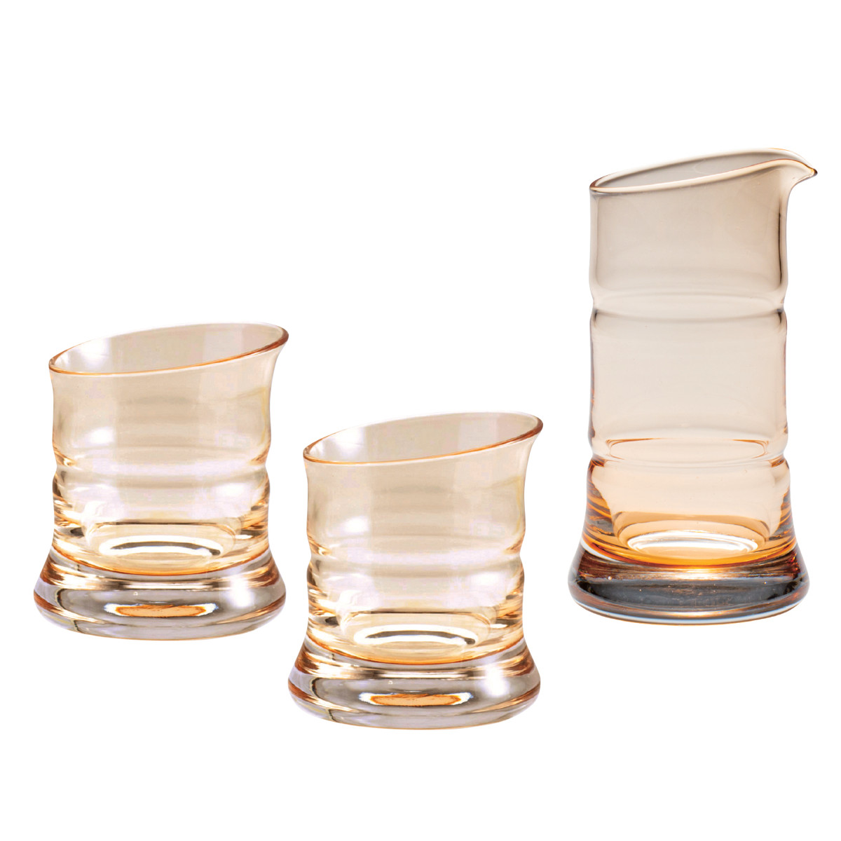 日本の風景の中でも際立つ個性を魅せる竹をモチーフにした、美しいフォルムのガラス酒器「竹-bamboo-」シリーズ。しっかりとした幹の竹のかたちが印象的な徳利とぐいのみ大の3点セットです。華やかな雰囲気でお酒も一層美しく見える金竹色。雰囲気ある佇まいで晩酌の席を涼し気に演出してくれます。